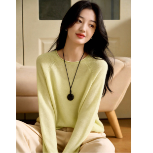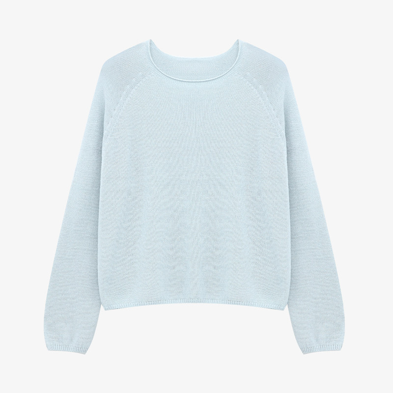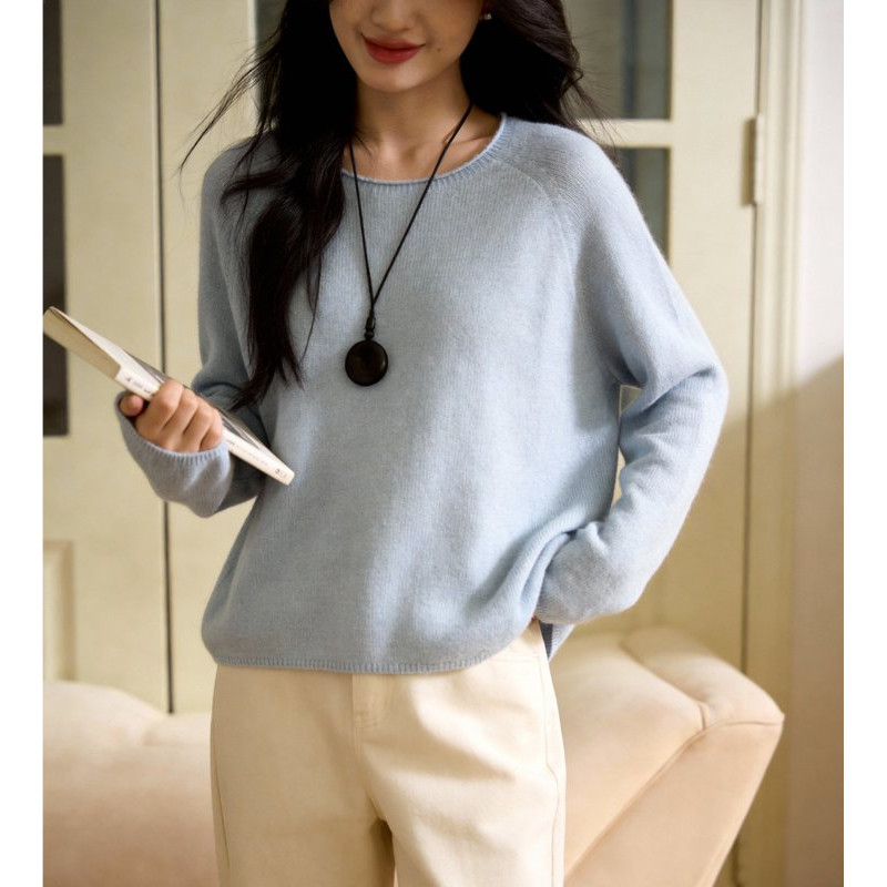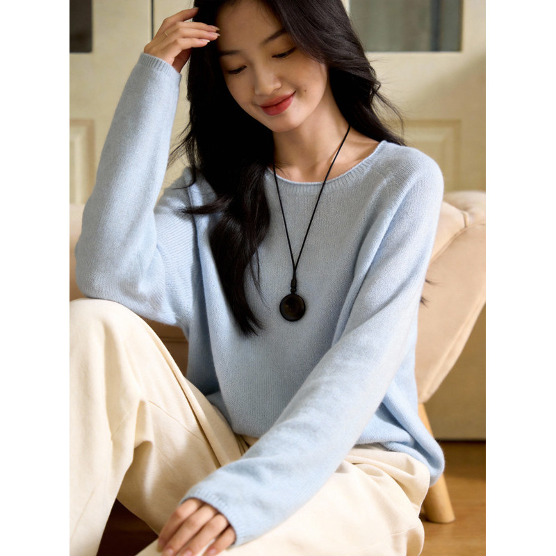 女春季 Basic 针织衫 百家好蓝色圆领长袖 气质显瘦高级感上衣 House