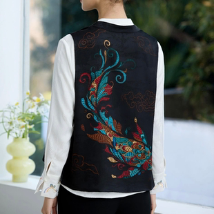 马甲坎肩小衫 2026夏季 上衣无袖 气质优雅国风真丝刺绣女装 2636 新款