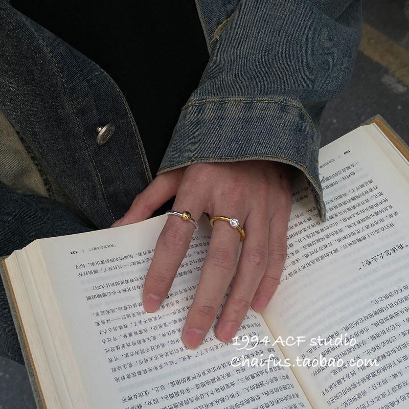 柴夫工作室 简约百搭彩色爱心锆石复古链条设计感戒指指环 J254