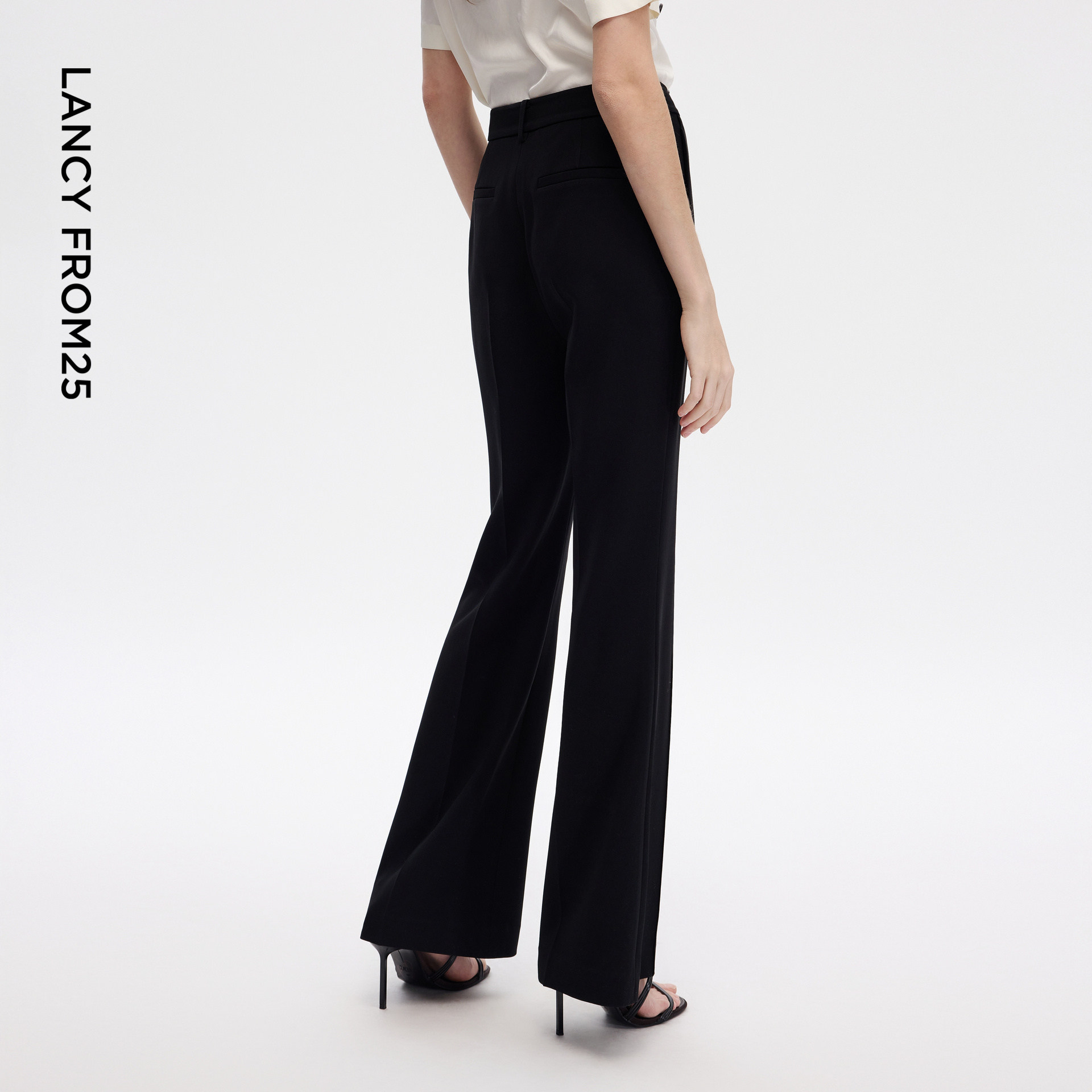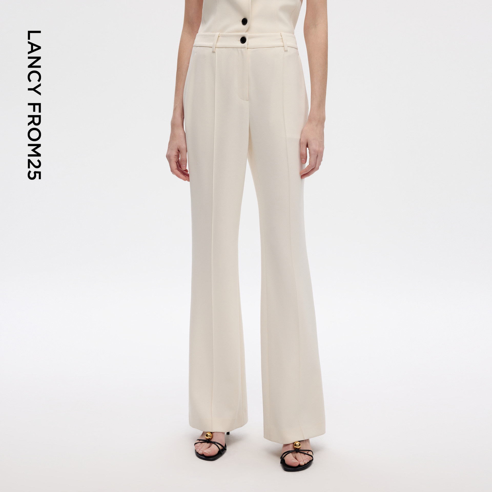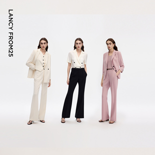 新款 朗姿25三醋酸高腰立体中缝修身 女2026年夏季 设计感喇叭裤 西裤