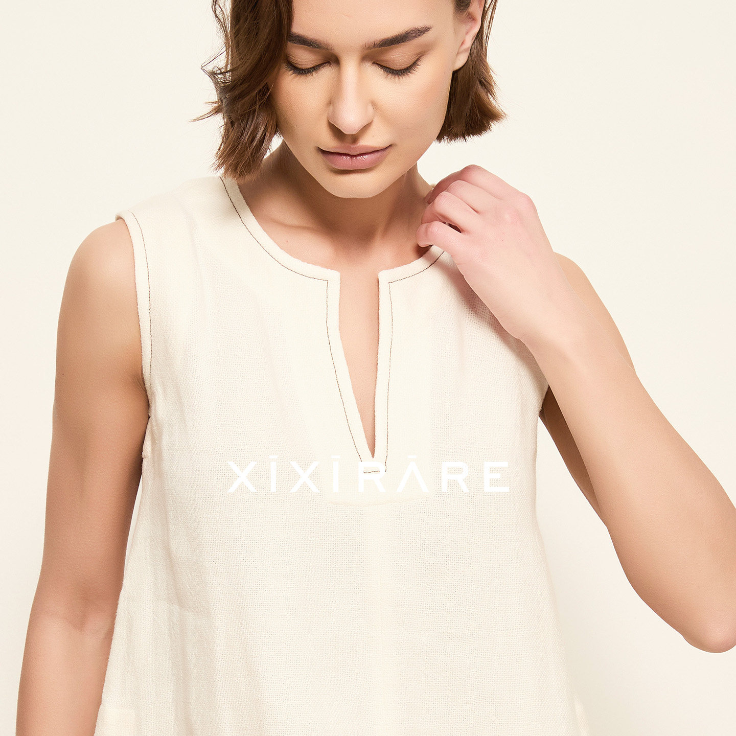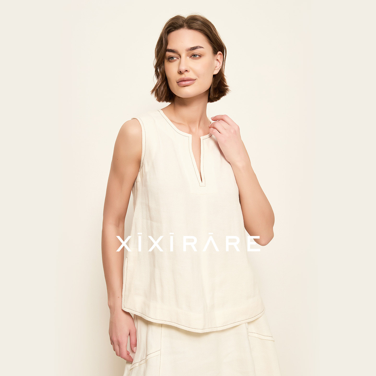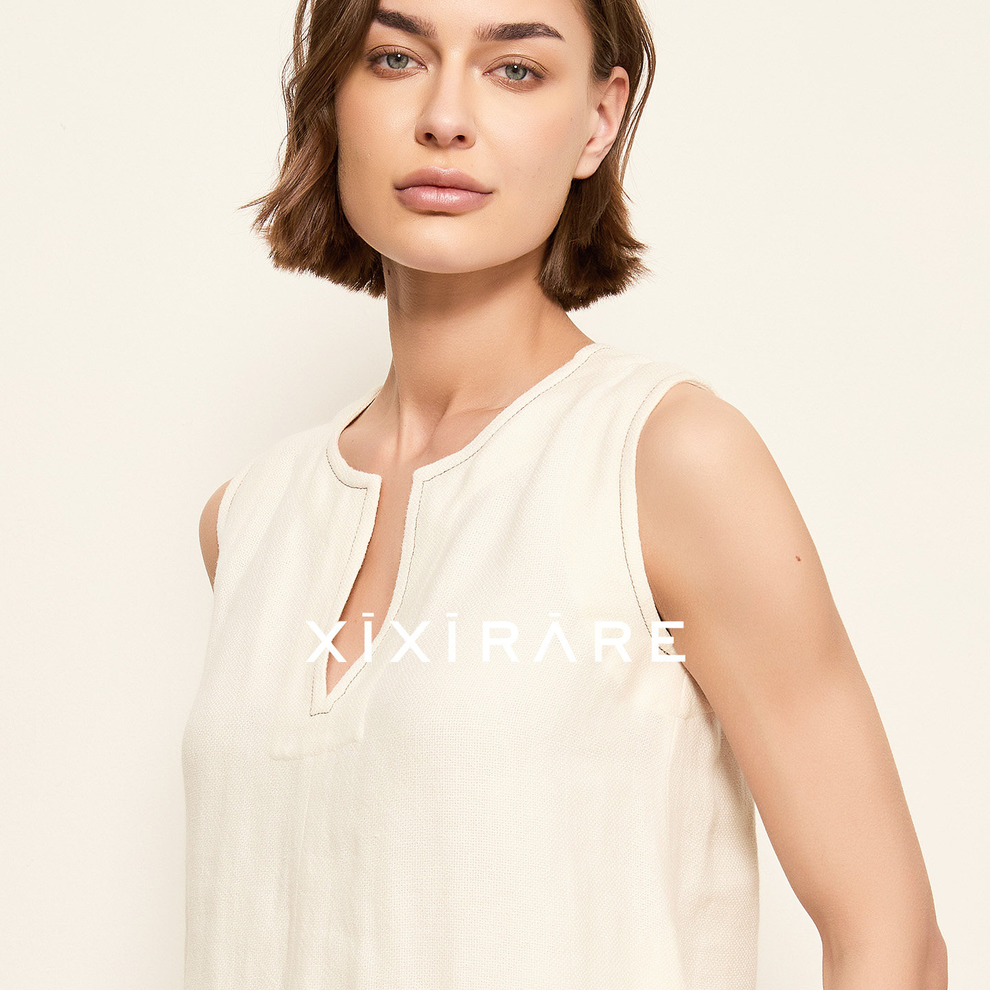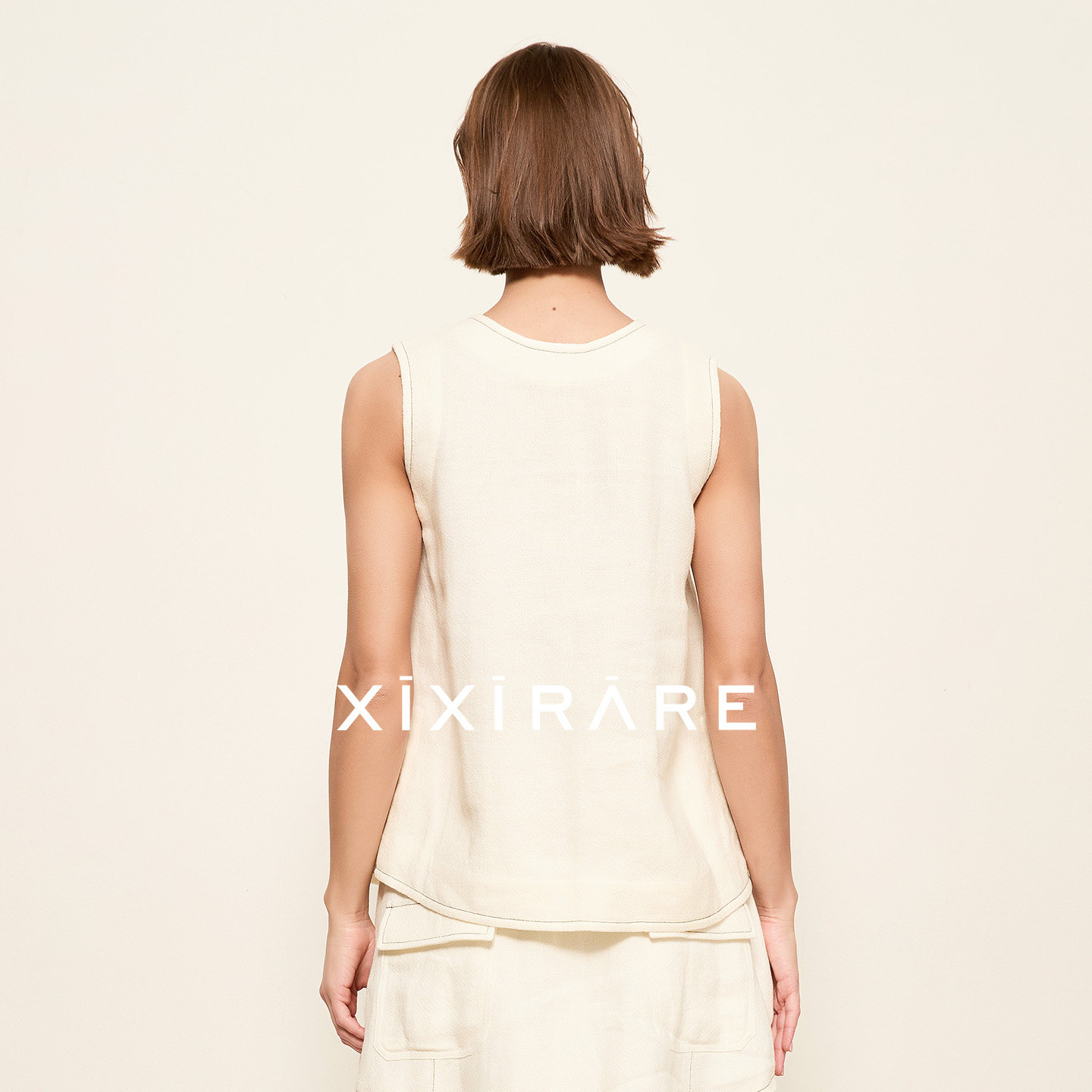 气质廓形上衣白 T恤背心阔版 xixirare稀宥女装 亚麻简约宽松无袖