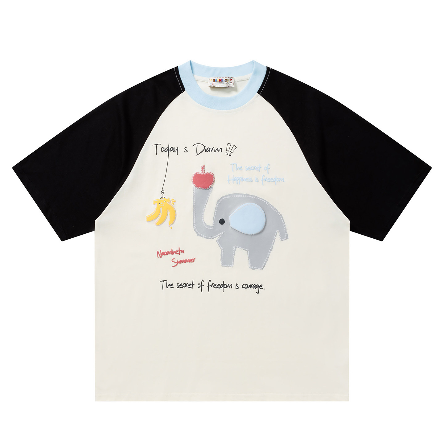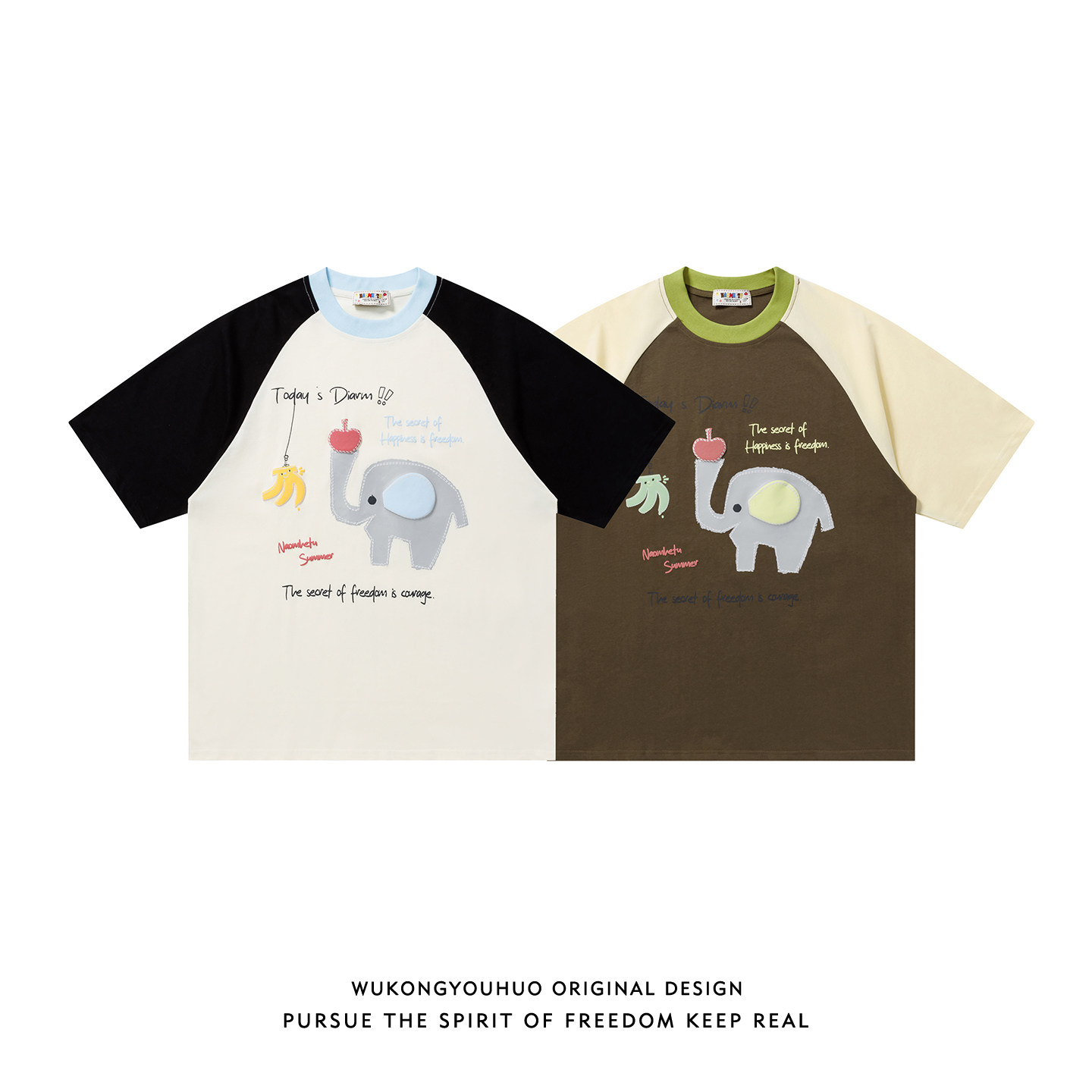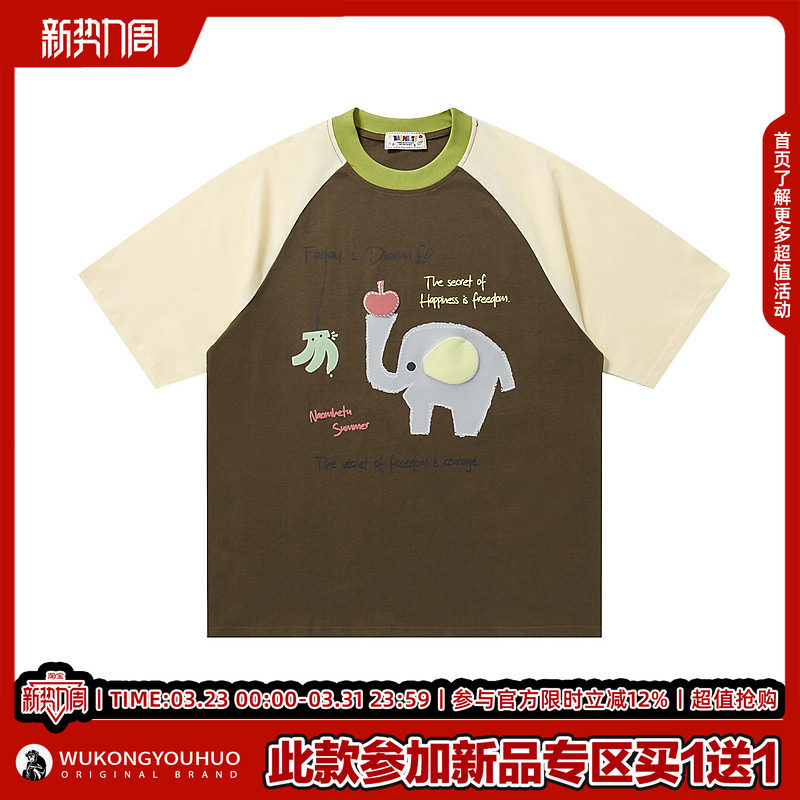 体恤 T恤男潮牌宽松情侣五分袖 悟空有货夏季 趣味小象发泡印花短袖