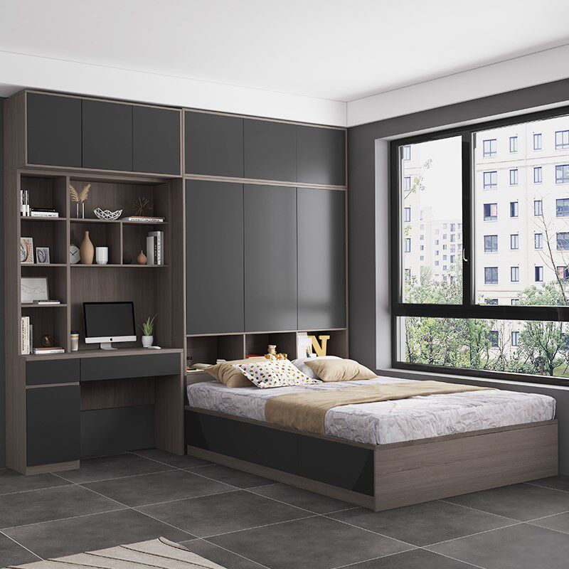 小户型客厅隔断衣柜组合床多功能侧柜一体储物床卧室省空间床定制