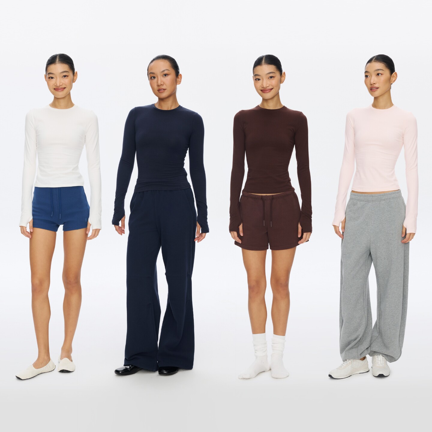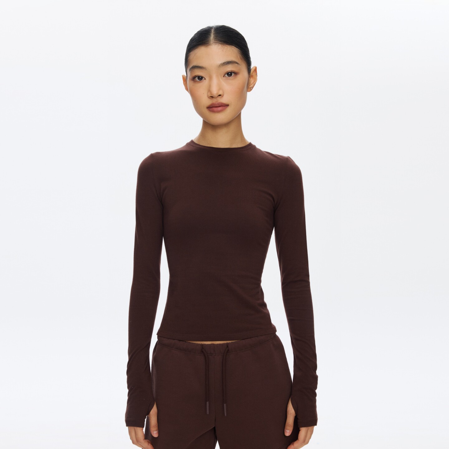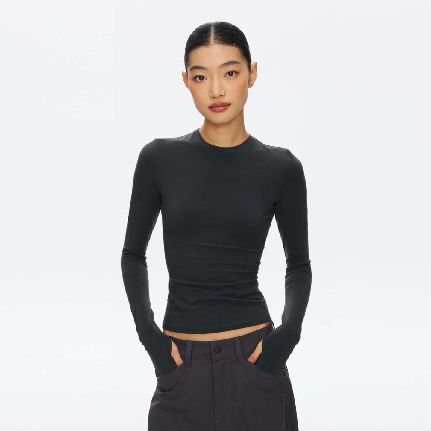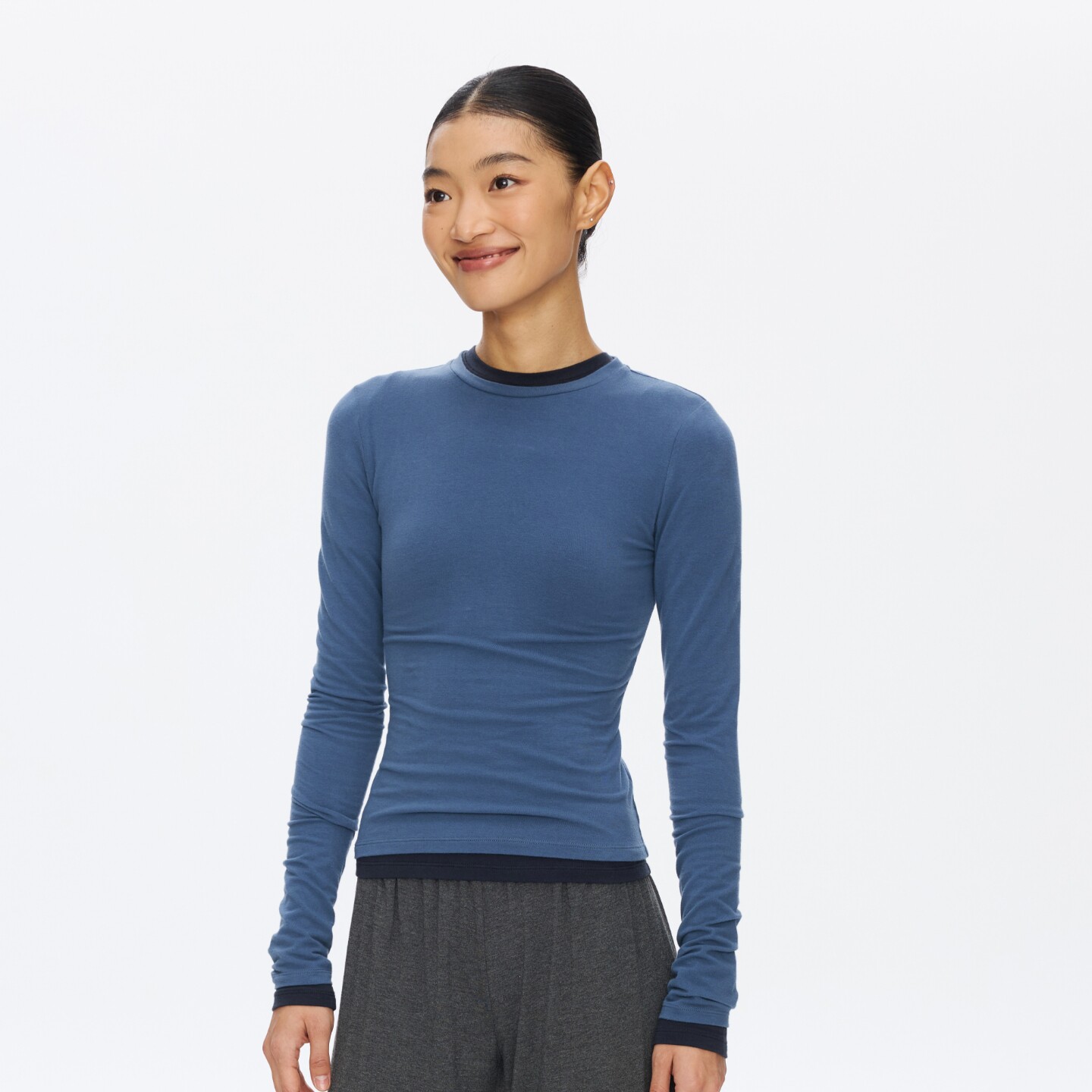 t恤女春季 圆领长袖 运动瑜伽服纯色内搭上衣 美式 oneup收腰显瘦修身