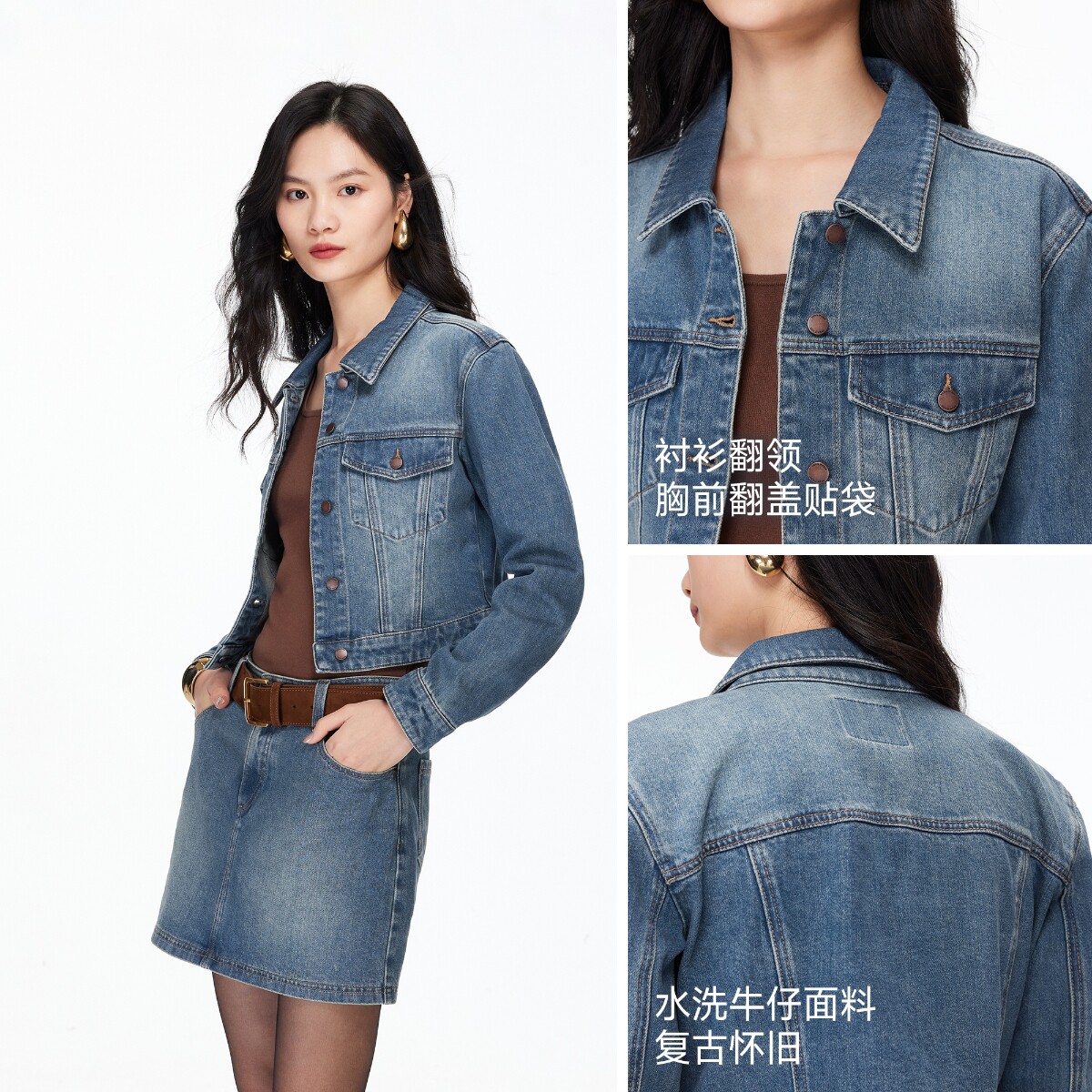 修身 Vero 正肩水洗短款 新款 牛仔外套326157007 Moda短外套2026春季