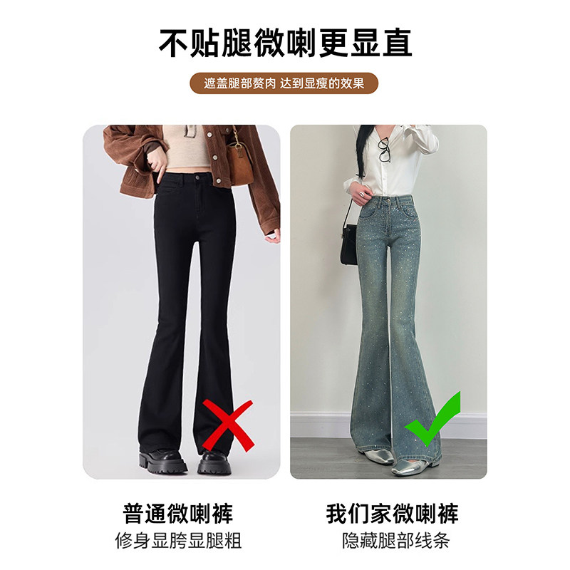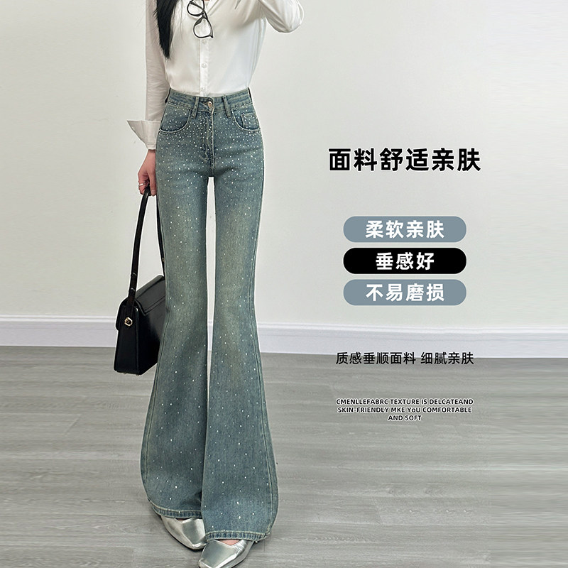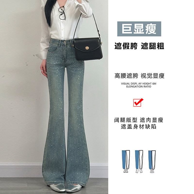 马蹄裤 浅蓝色烫钻微喇牛仔裤 爆闪高腰显瘦百搭时尚 2026新款 女春季