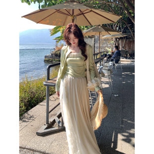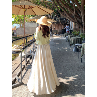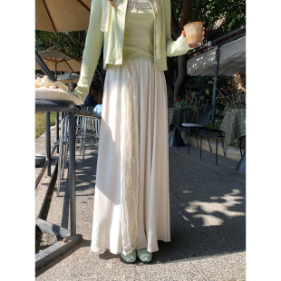 温柔杏色半身裙网纱拼接长裙 韩系高智感法式 Even一雯 月下银光