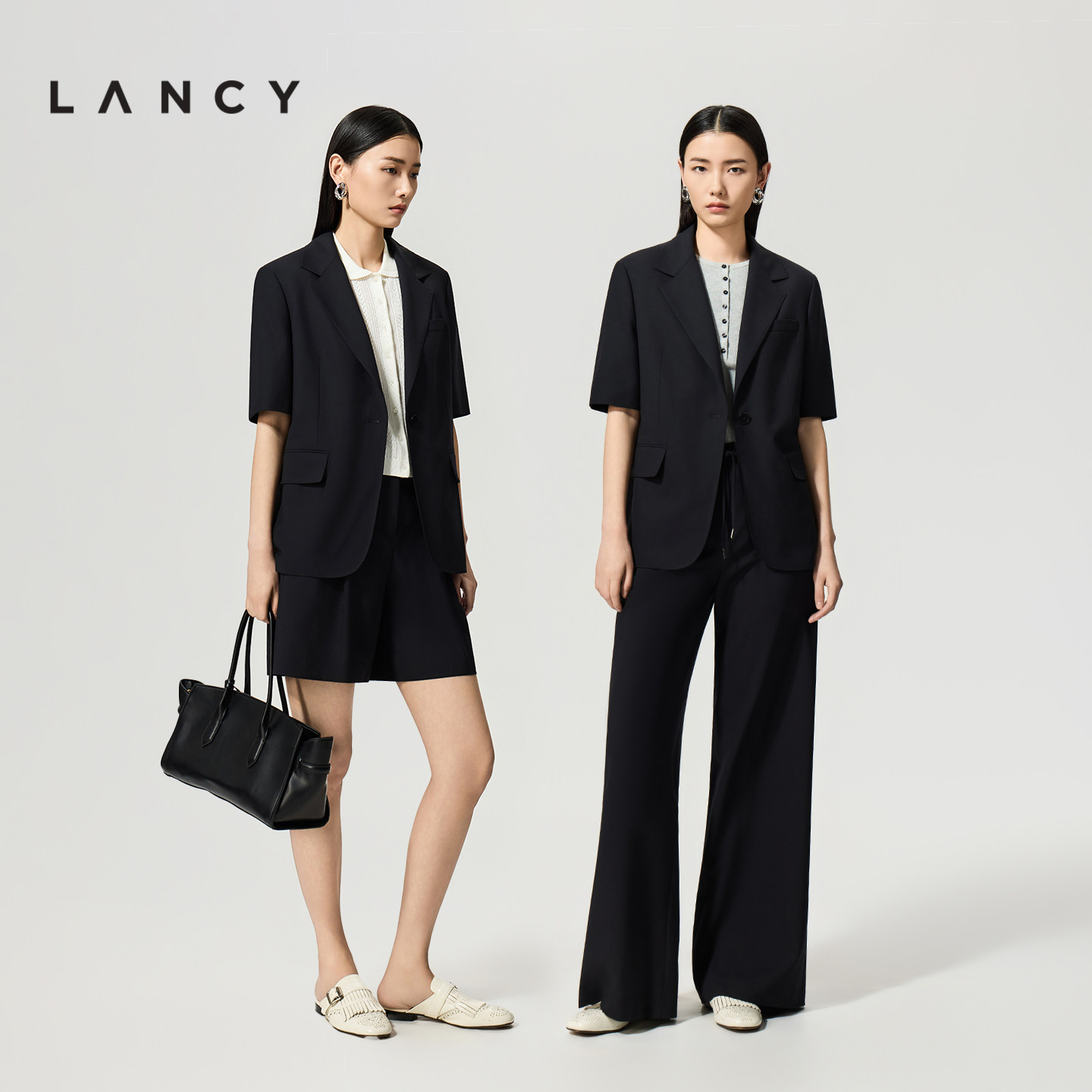 朗姿2026夏新款 简约通勤短袖 西装 套装 LANCY 外套西裤 女 纯羊毛