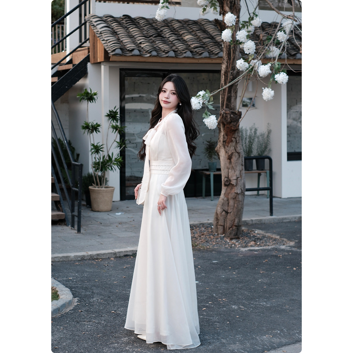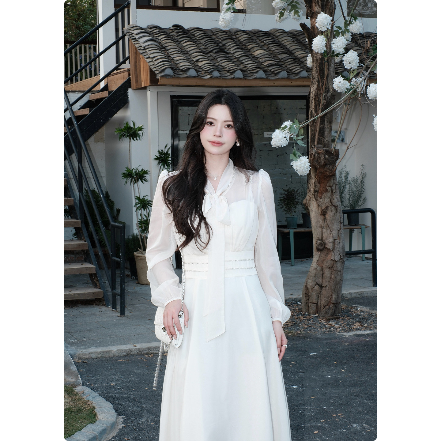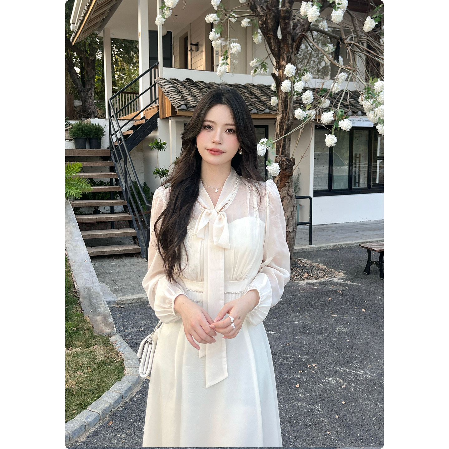显瘦修身 糯米子 慵懒风连衣裙新款 法式 收腰长裙裙子 柔光月汐