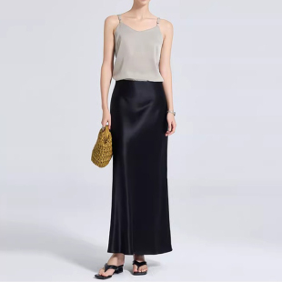 大码 黑色侧开叉醋酸绸缎半身裙女胖妹妹高腰mm显瘦弹力垂感鱼尾裙