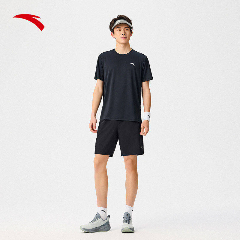 新款 夏季 体训五分裤 短裤 上衣两件套 安踏速干T恤运动套装 短袖 男士