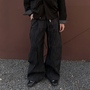 双褶裥设计 纯棉仿麻质感 CATSSTAC 墨竹条纹通勤宽松阔腿西裤