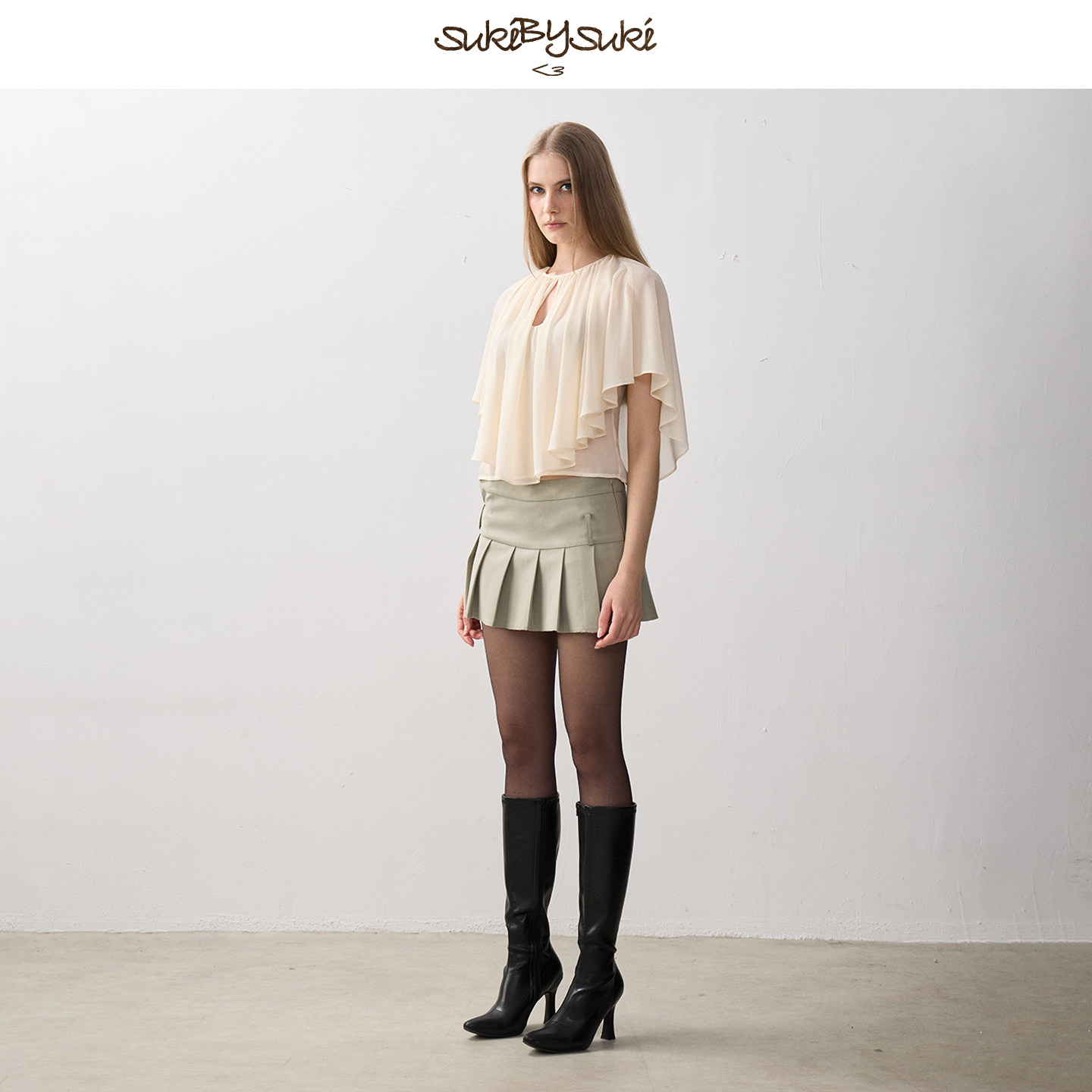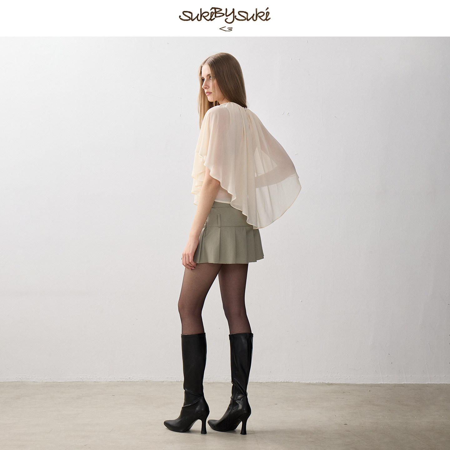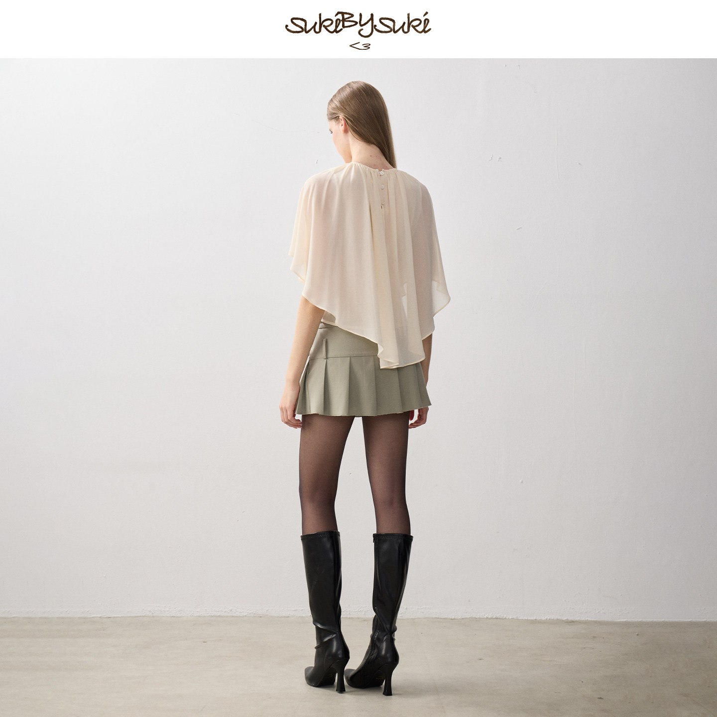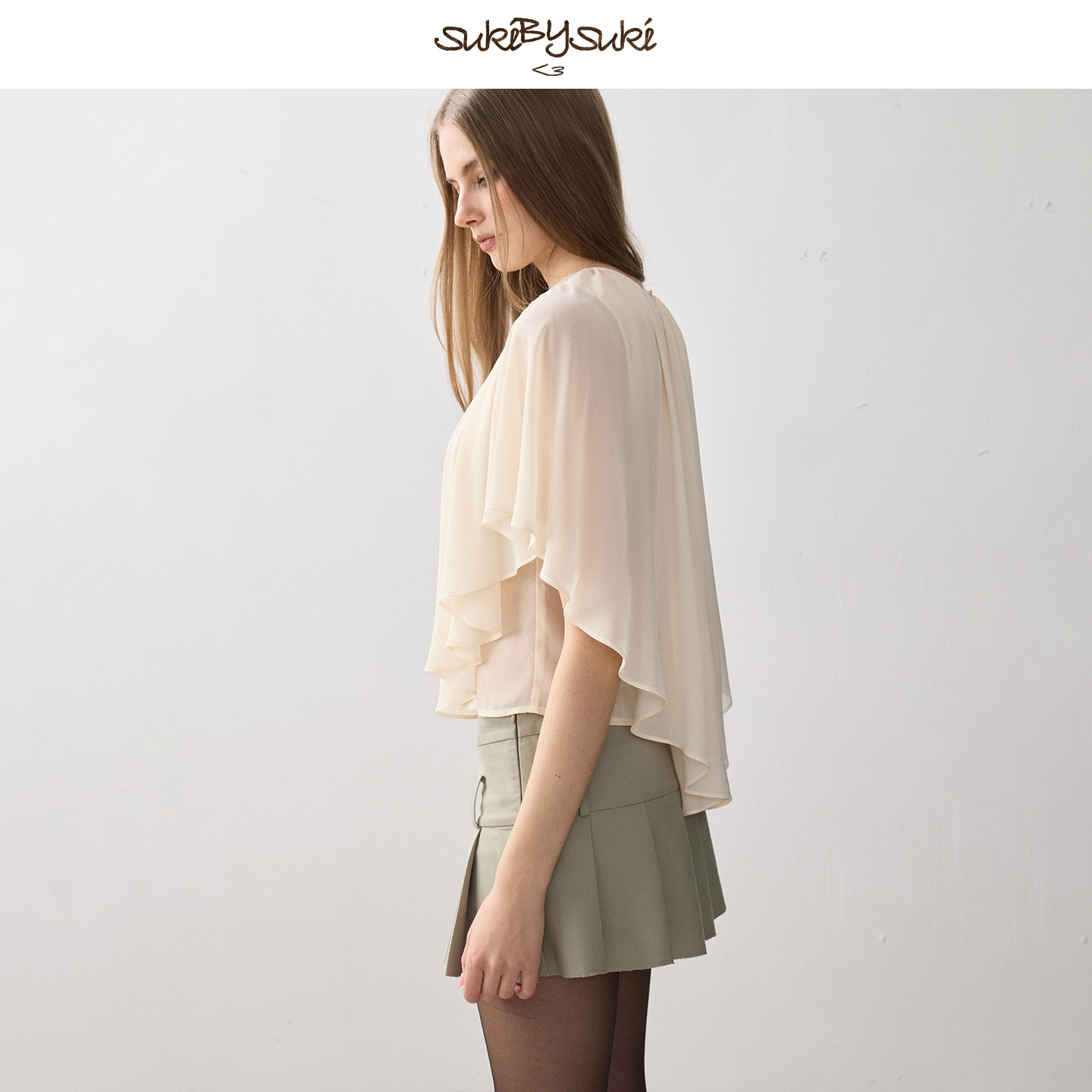 披肩上衣不规则下摆轻薄外搭小衫 SukiBySuki 抽褶镂空雪纺法式