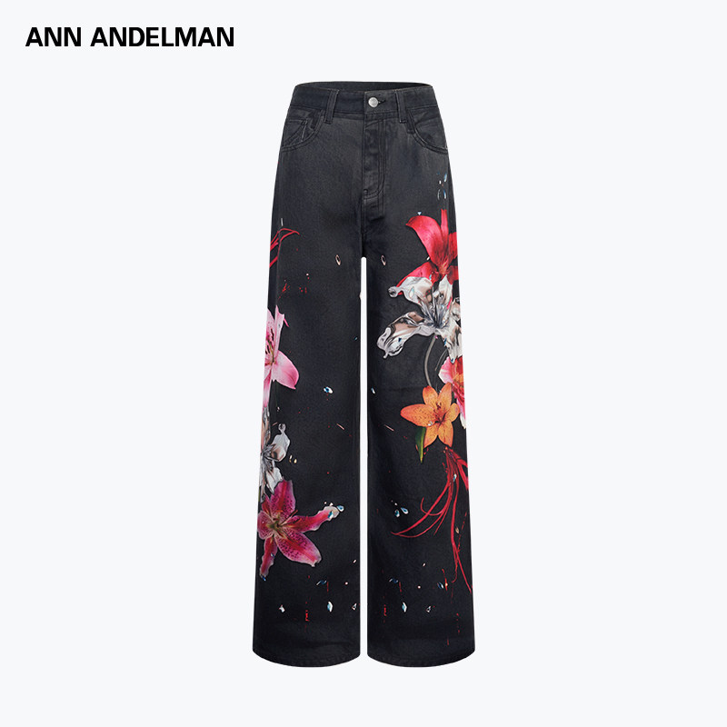 银泰百货 ANN 女士花卉直筒阔腿牛仔裤 秋冬新款 301286 ANDELMAN