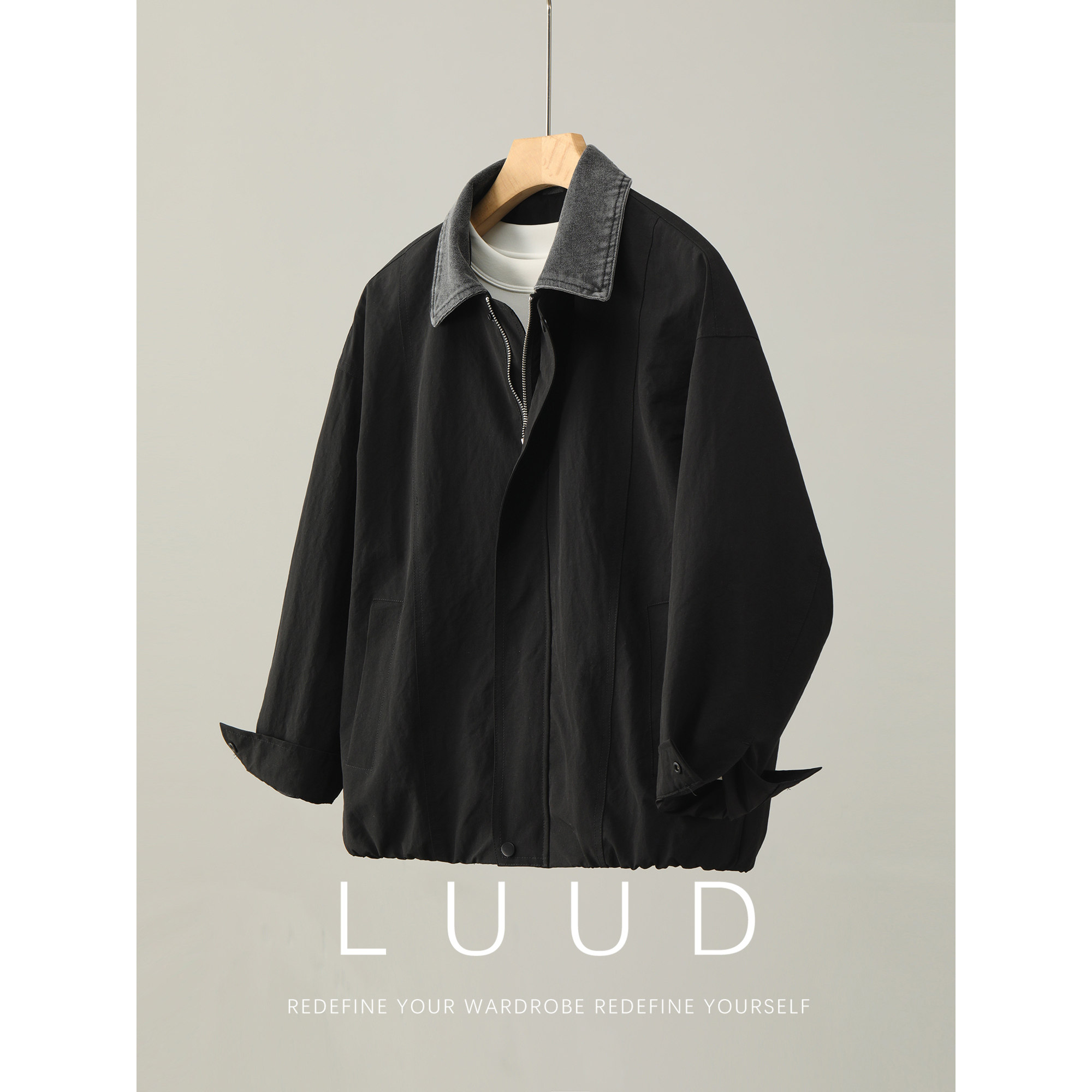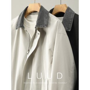 LUUD 外套 复古机车风拼料牛仔翻领夹克男高端轻熟风抗皱休闲工装