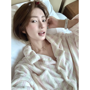 女加厚保暖长袖 JoyceBra 条纹珊瑚绒睡衣套装 新款 翻领家居服 冬季