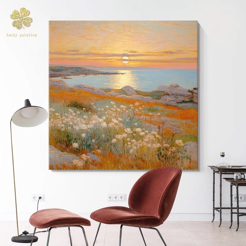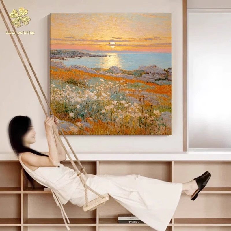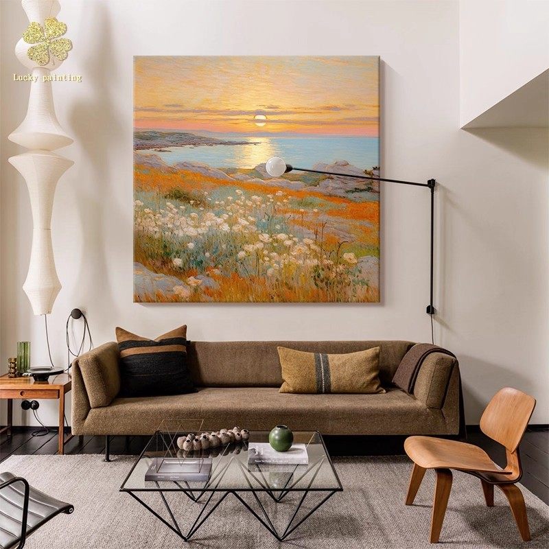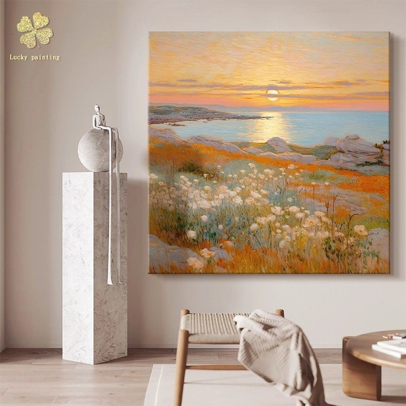 莫奈海上日出装 饰画方形仿油画风景成品复古唯美高级卧室客厅挂画