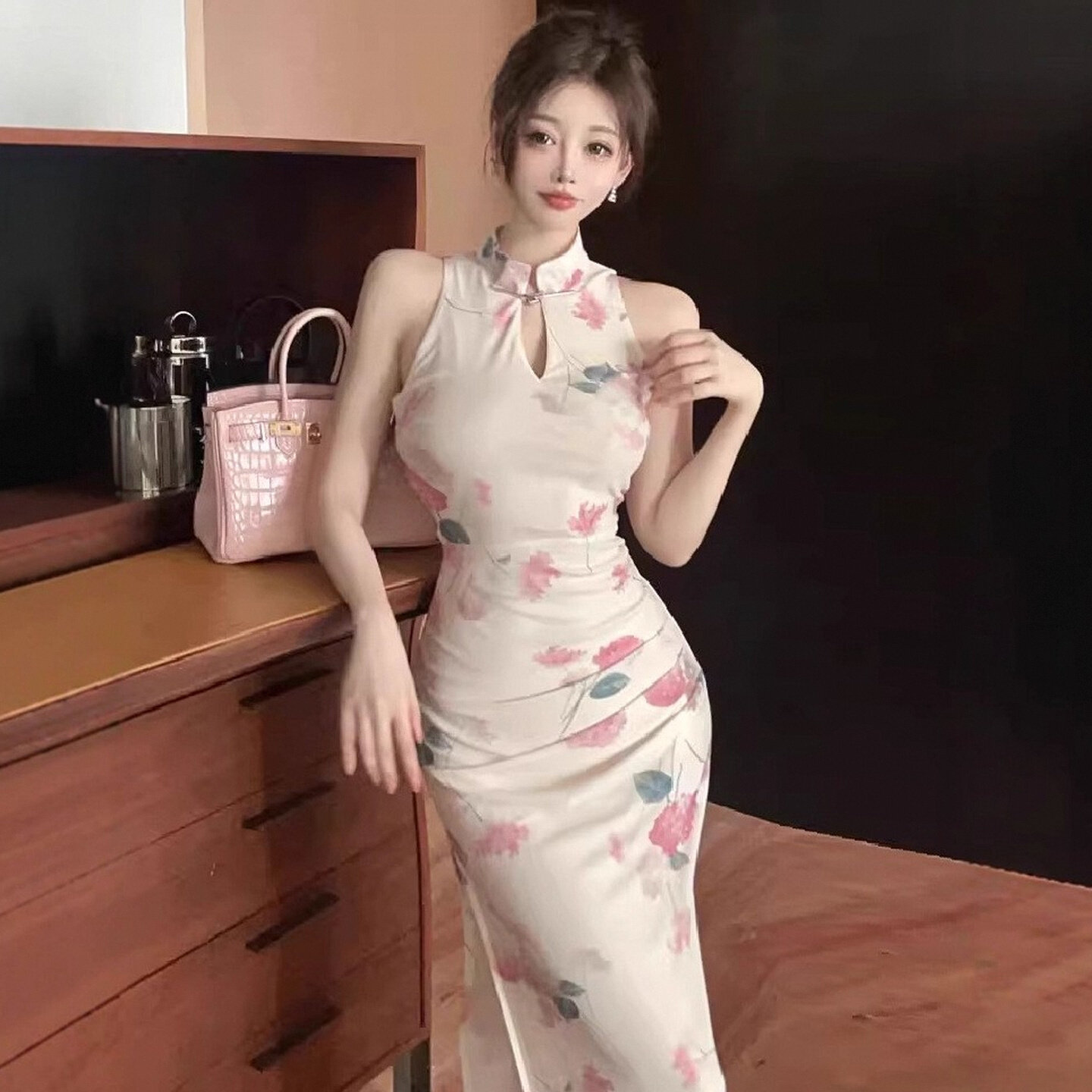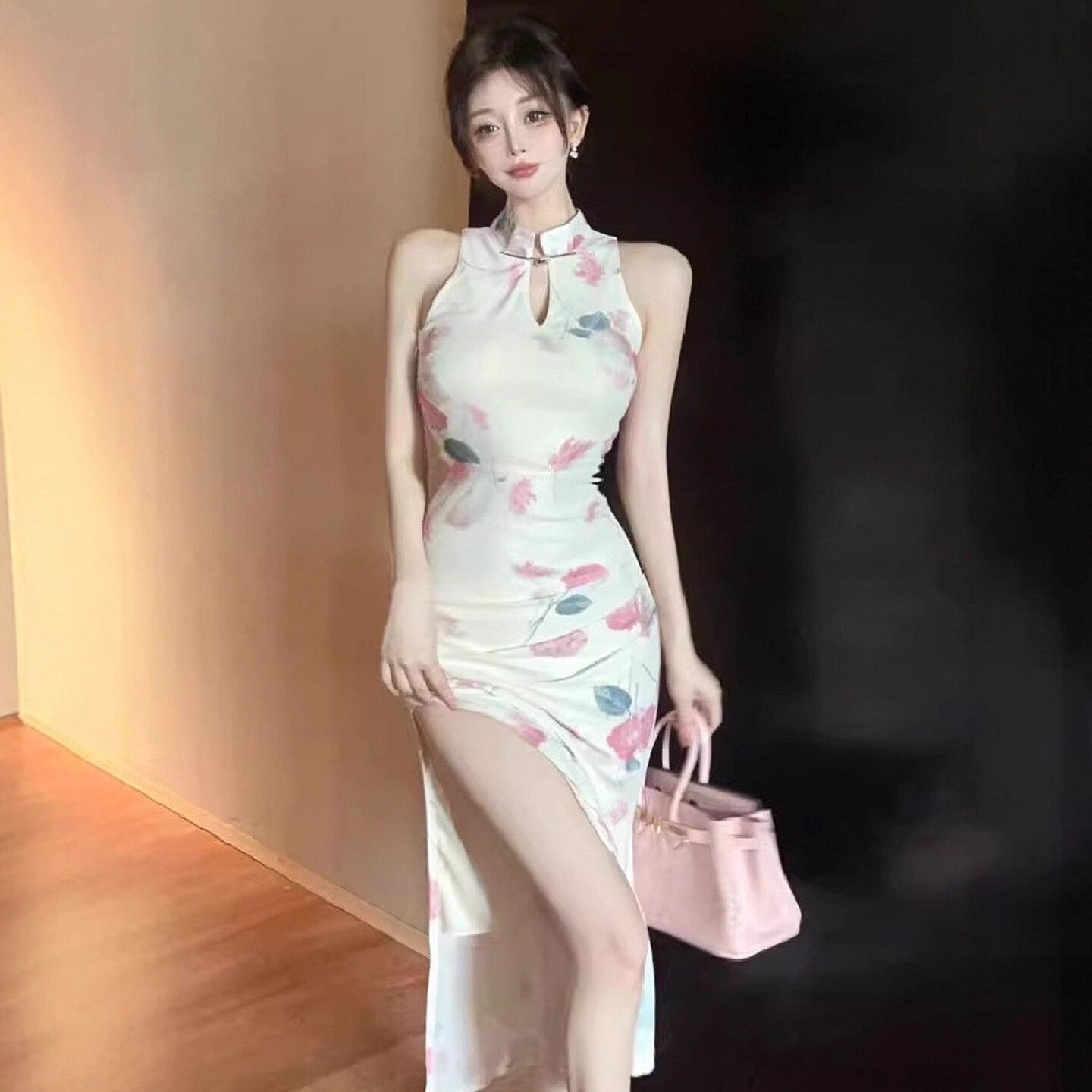 新中式 改良旗袍连衣裙气质复古足疗SPA技师工服女性感古典舞裙子