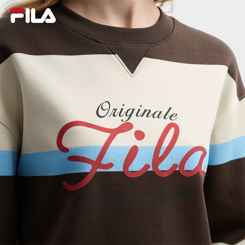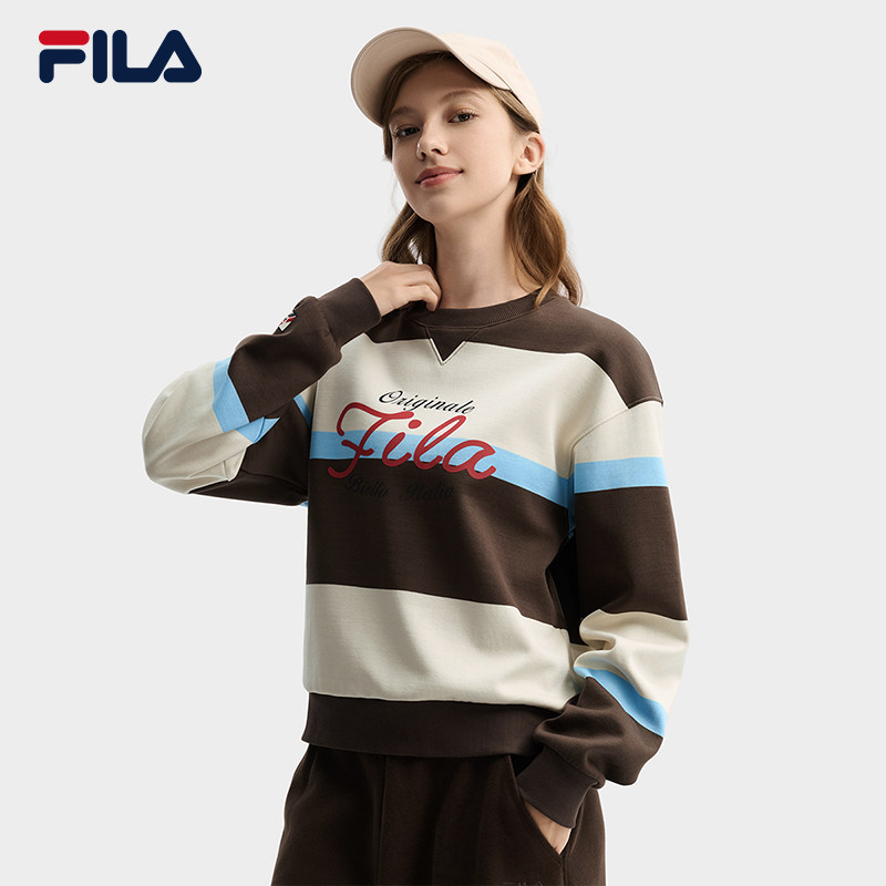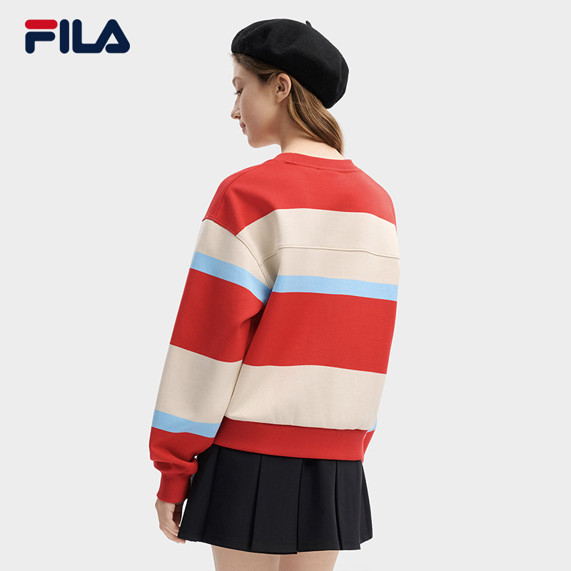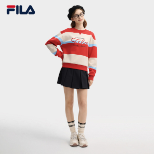 舒适宽条纹拼色针织上衣 新款 FILA 斐乐官方女子套头卫衣2026春季