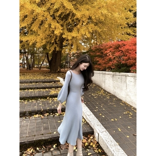显瘦内搭长款 姜雯 针织打底连衣裙气质修身 收腰长袖 裙子 巨好看