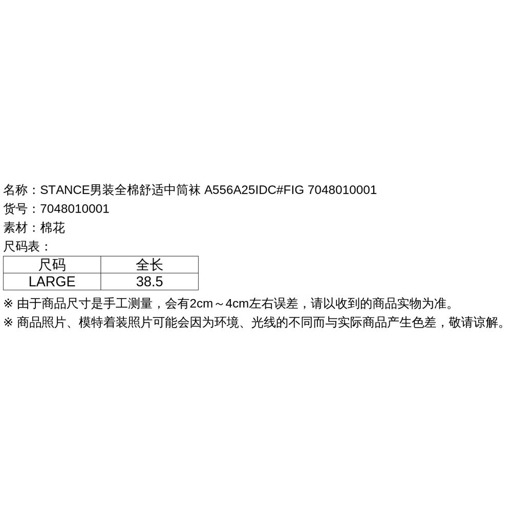 FIG 1h可退 A556A25IDC 全棉舒适中筒袜 70480 日本直邮STANCE男装