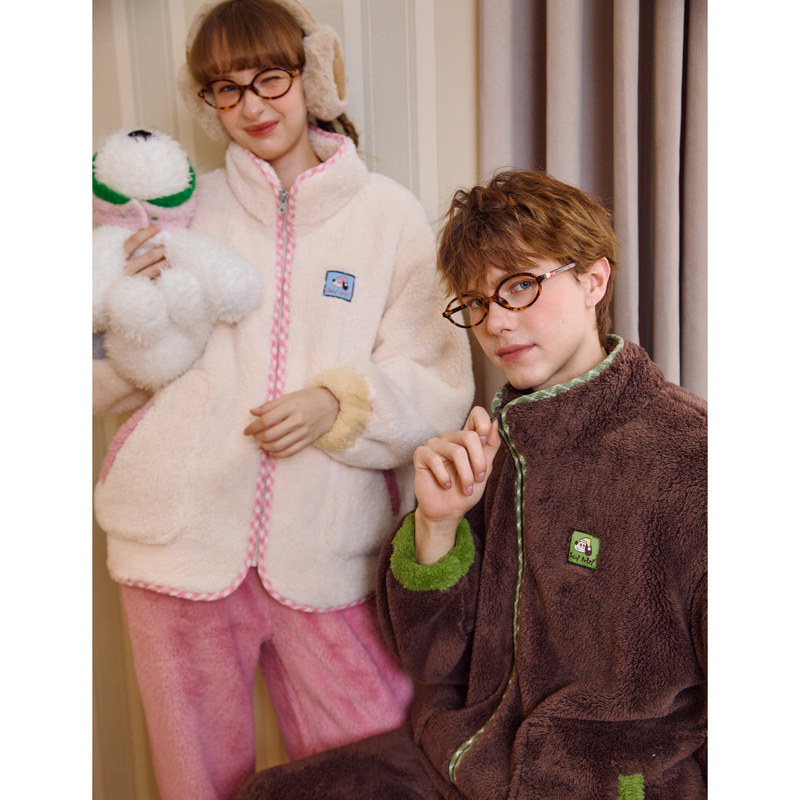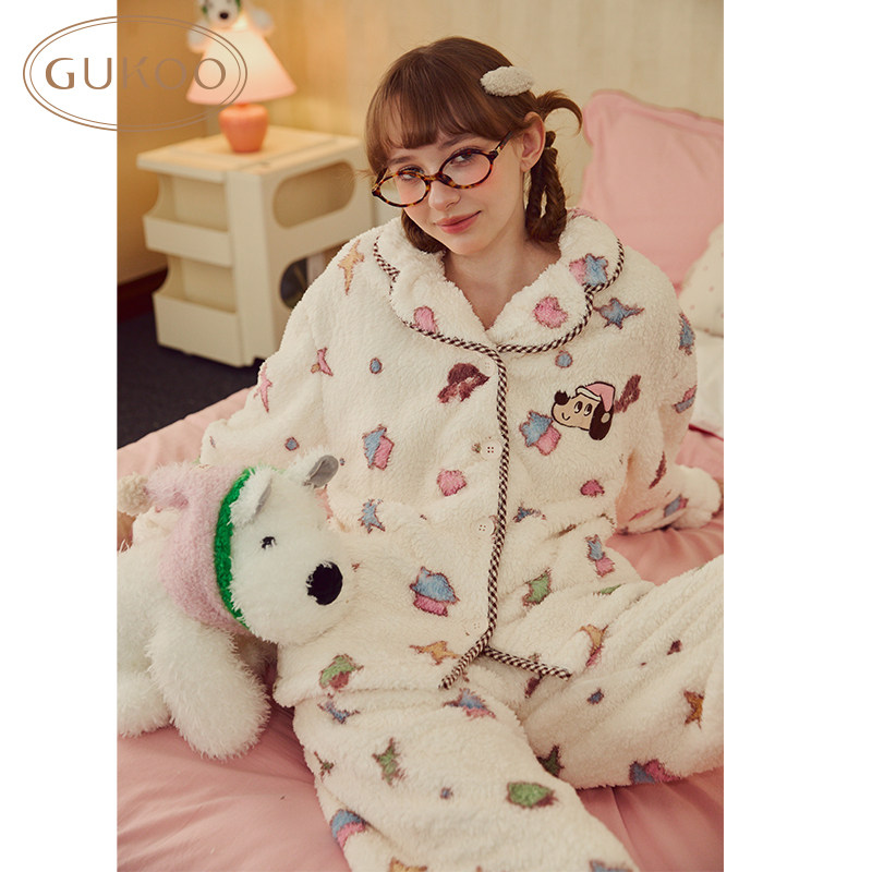 玛丽猫联名加绒竖条纹家居服套装 Gukoo 果壳睡衣女冬款