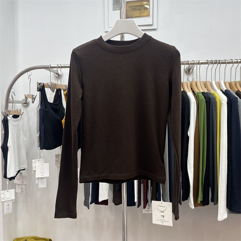 熙6209 上衣冬款 2圆领长袖 加绒T恤女内搭磨毛打底衫 修身 yuanxi元