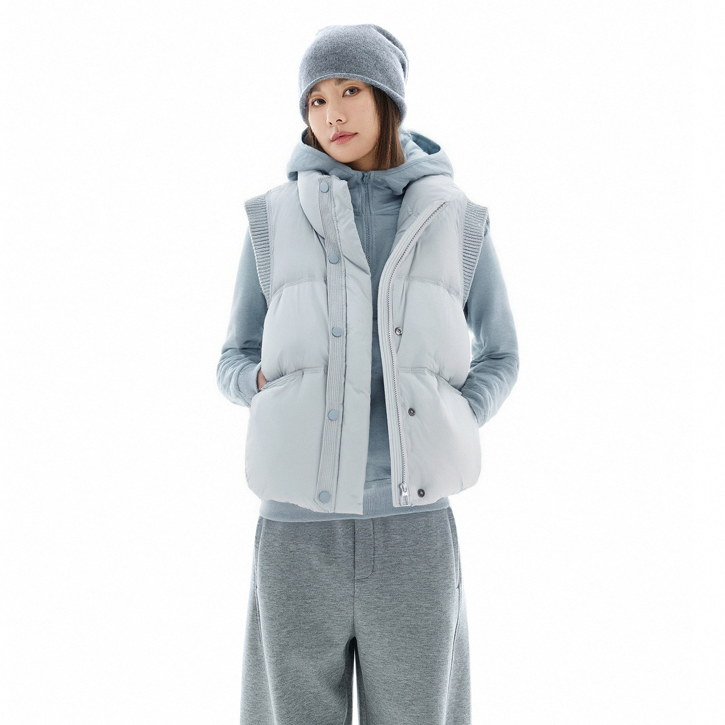 拉夏贝尔2025秋冬温柔气质金色扣圆领针织马甲女叠穿坎肩