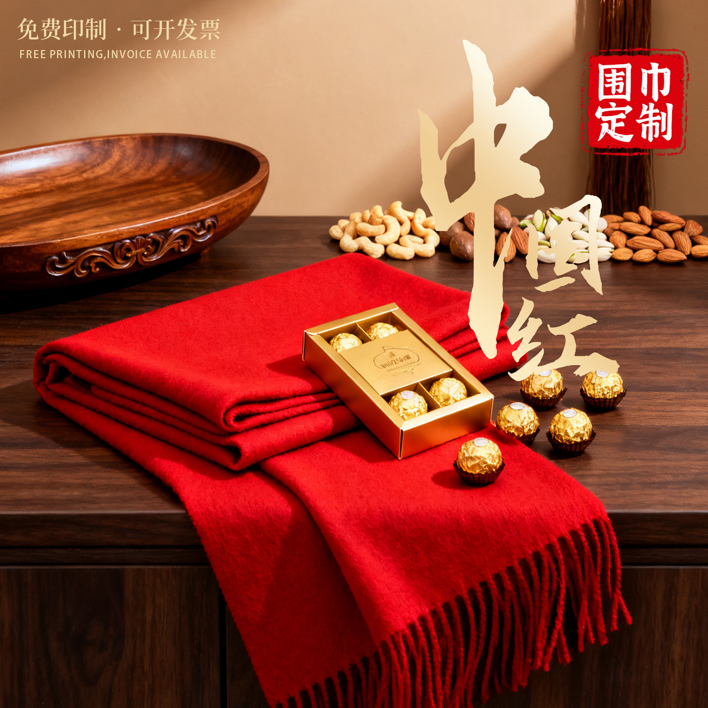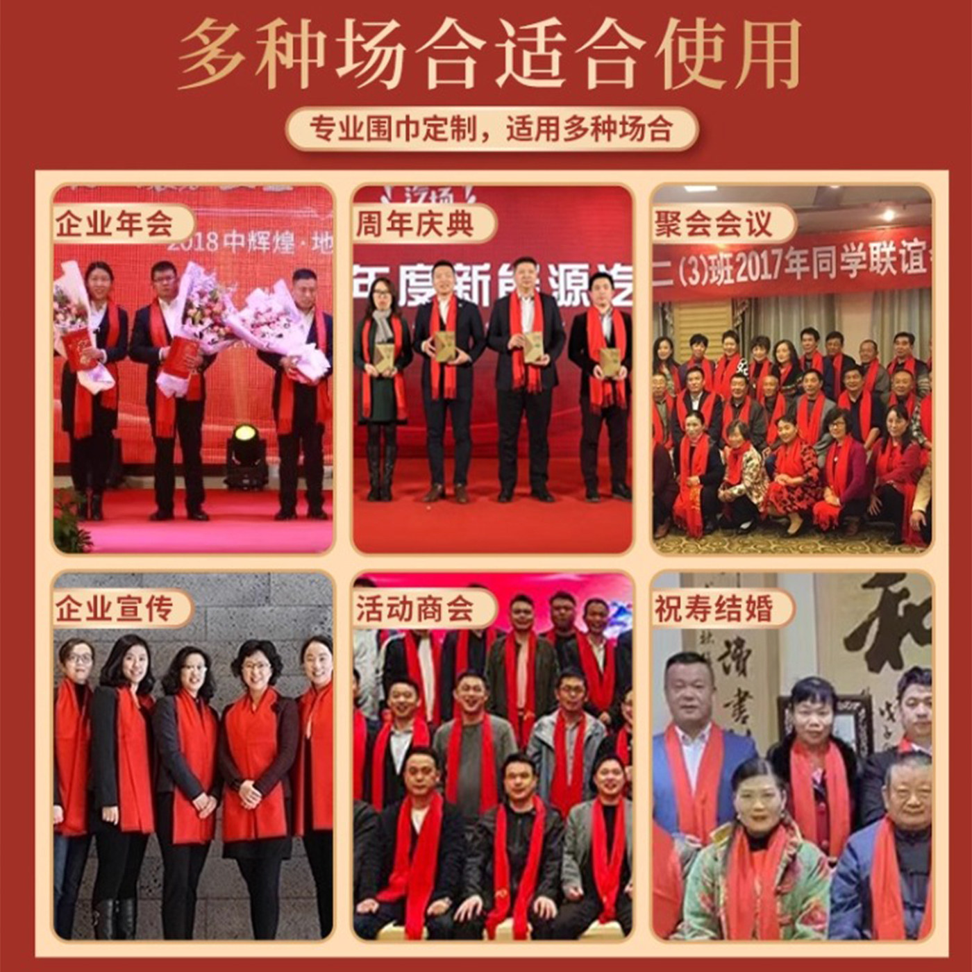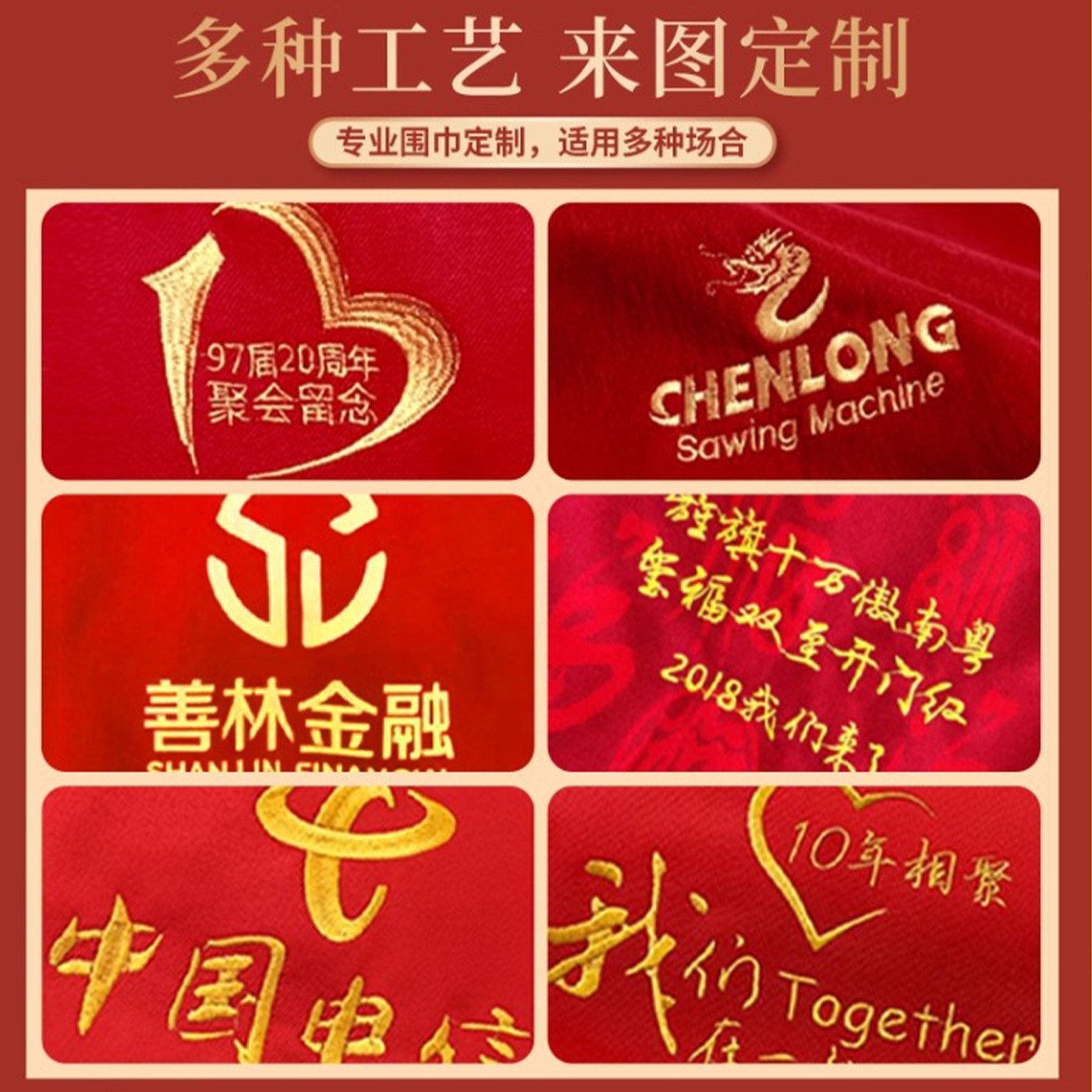 中国红围巾定制印logo公司年会开业庆典同学聚会祭祖围脖印字刺绣
