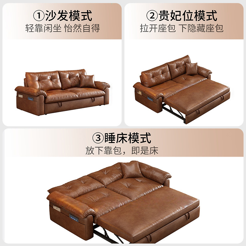 政府补贴中古风油蜡皮沙发床可折叠一体两用2026新款 客厅小户型