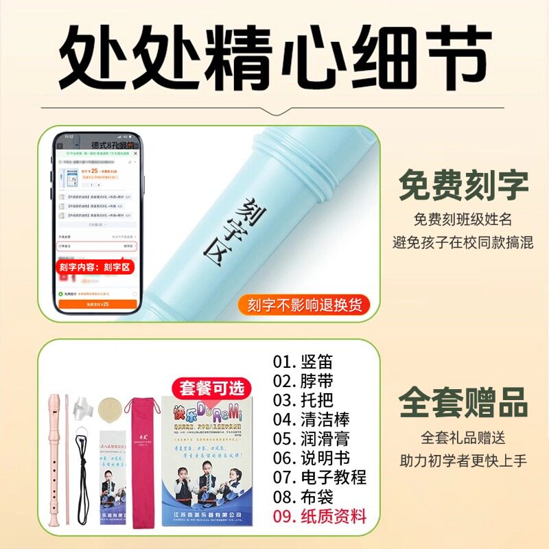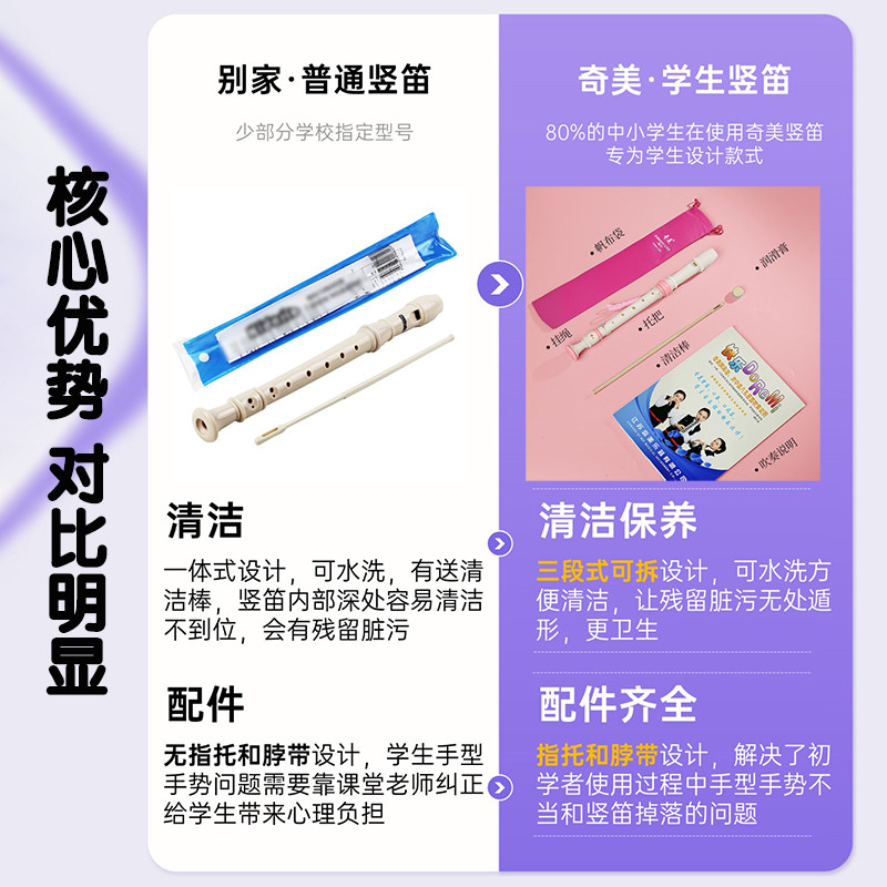 奇美竖笛小学生专用初中8孔德式 高音八孔笛子6孔初学C调儿童入门