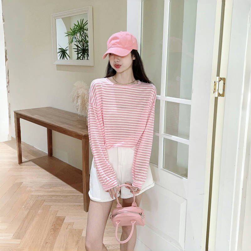 长袖 防晒衣女款 透明条纹罩衫 薄款 宽松冰丝T恤上衣夏 今年流行爆款