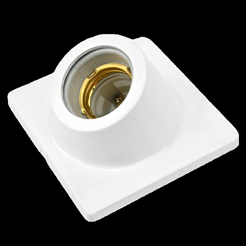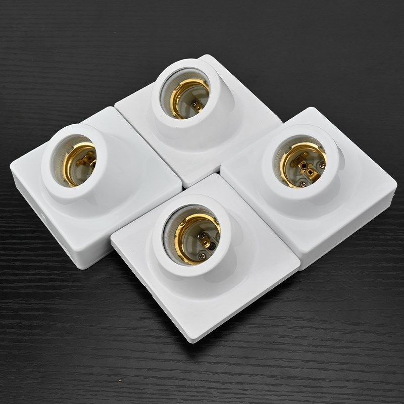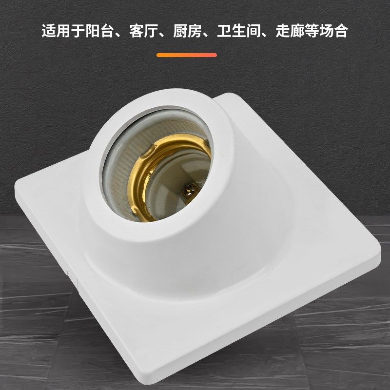 斜口E27螺口灯座方形暗装 86型螺口灯座 带陶瓷灯头LED节能灯灯座