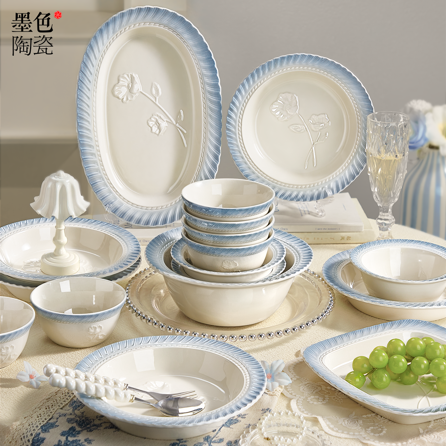 家用泡面汤碗盘子组合吃饭中式 18头碗碟套装 4人碗筷餐具 新款 特价