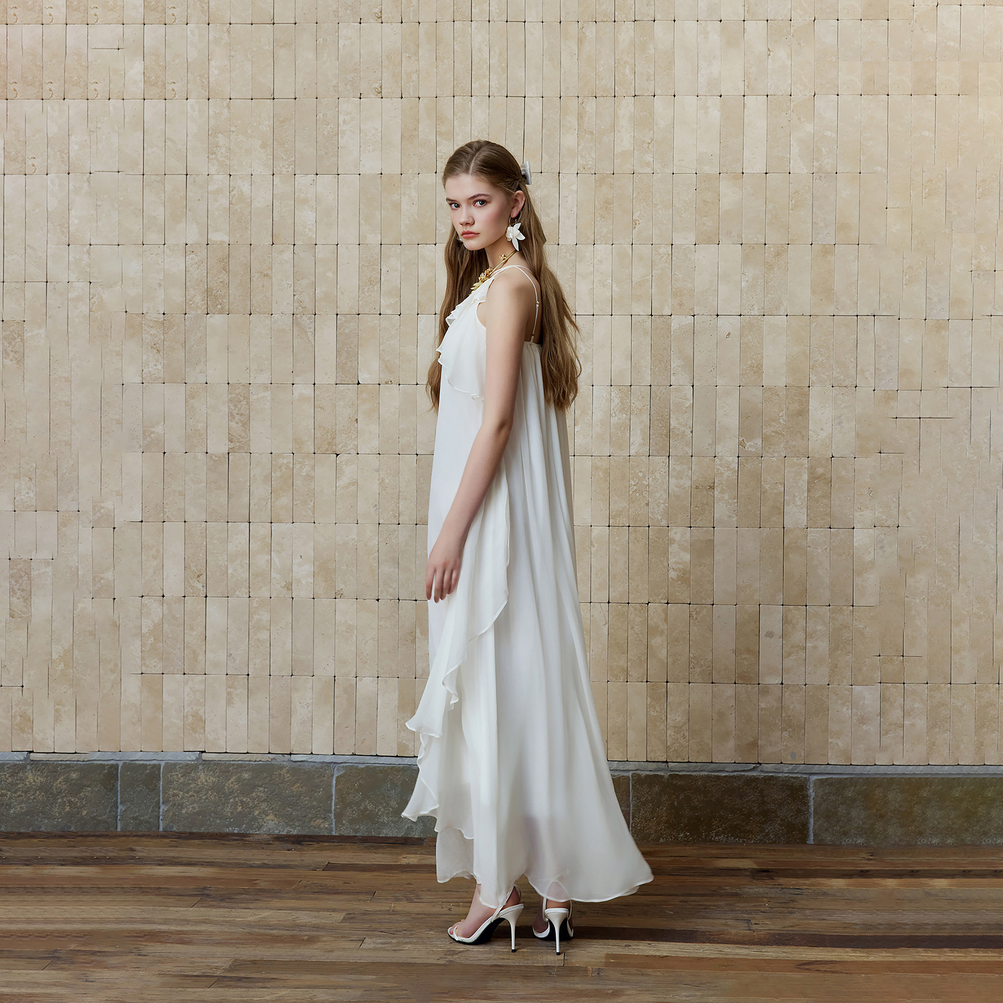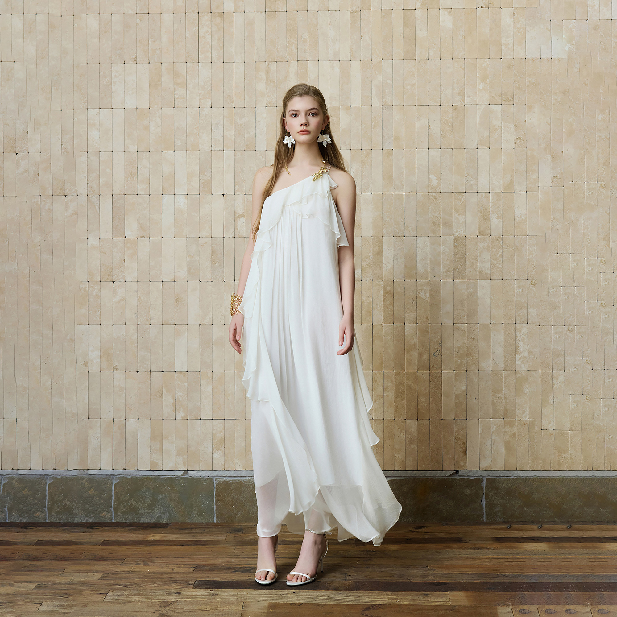 WEPRIVE 度假风 佩里月光连衣裙白月光长裙单肩荷叶边法式
