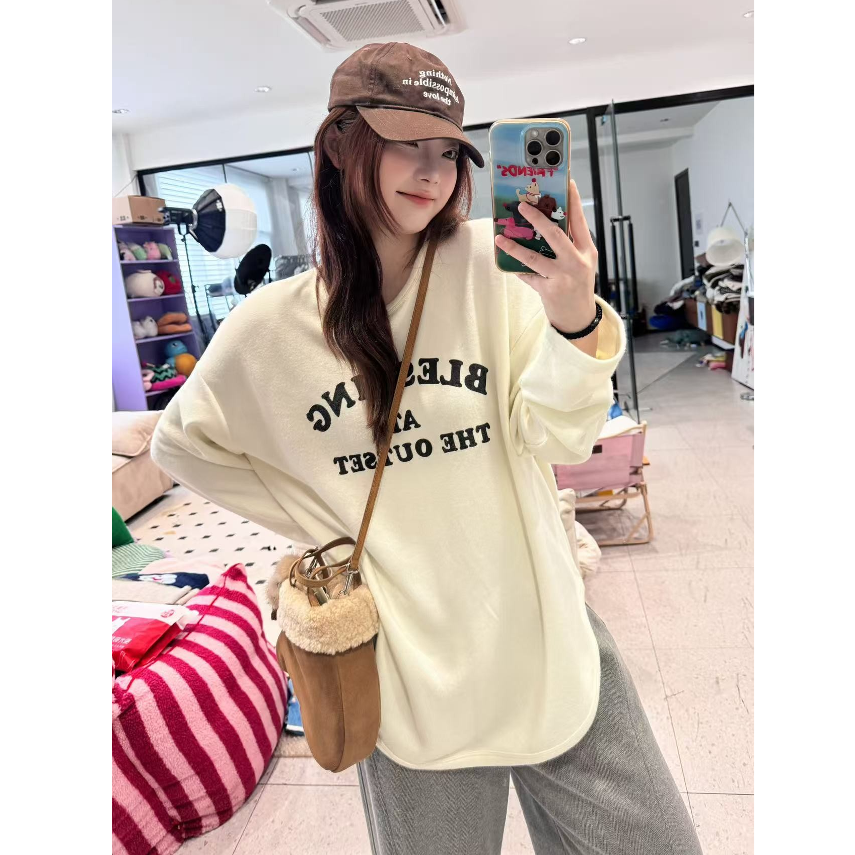 字母图案圆领长袖 韩版 宽松卫衣百搭 长期主义 蕾蕾
