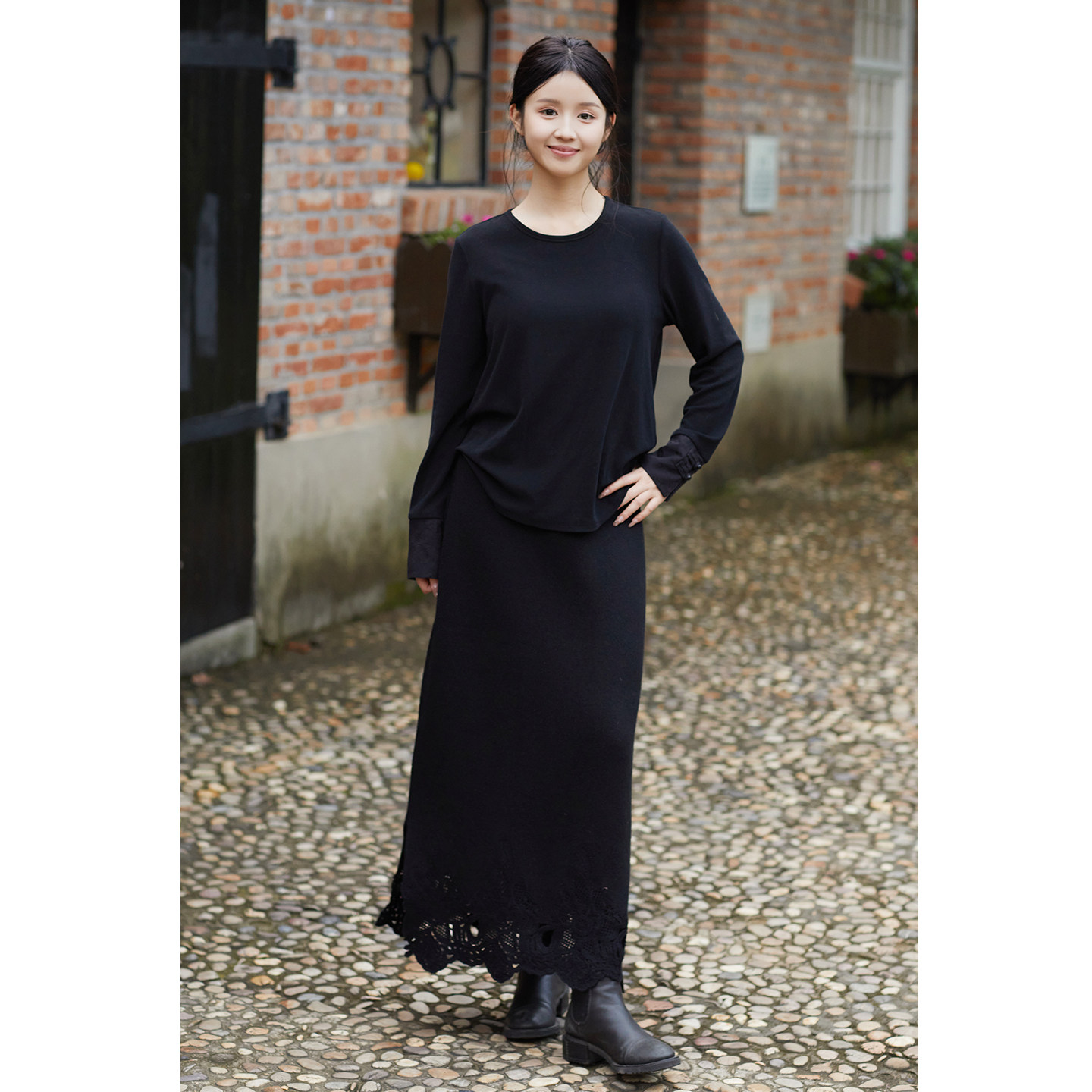 墨玉生烟 T恤打底衫 秋冬新款 显瘦百搭长袖 棉混纺中式 忘城N888座