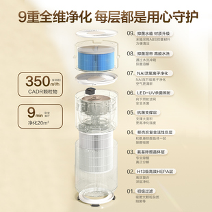IAM无耗材空气净化器M9 Pro家用除甲醛除菌吸烟除异味过敏原净化