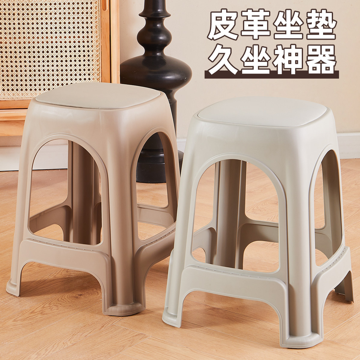 加厚塑料凳子成人方凳软包凳客厅家用餐桌椅子结实耐用可叠放高凳