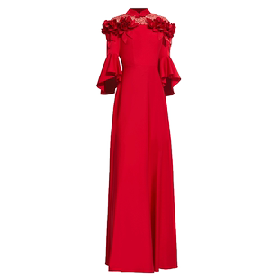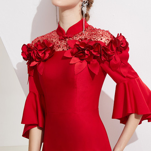 创意狐红色新中式 宴会显瘦晚礼服年会订婚礼服 改良旗袍主持人晚装