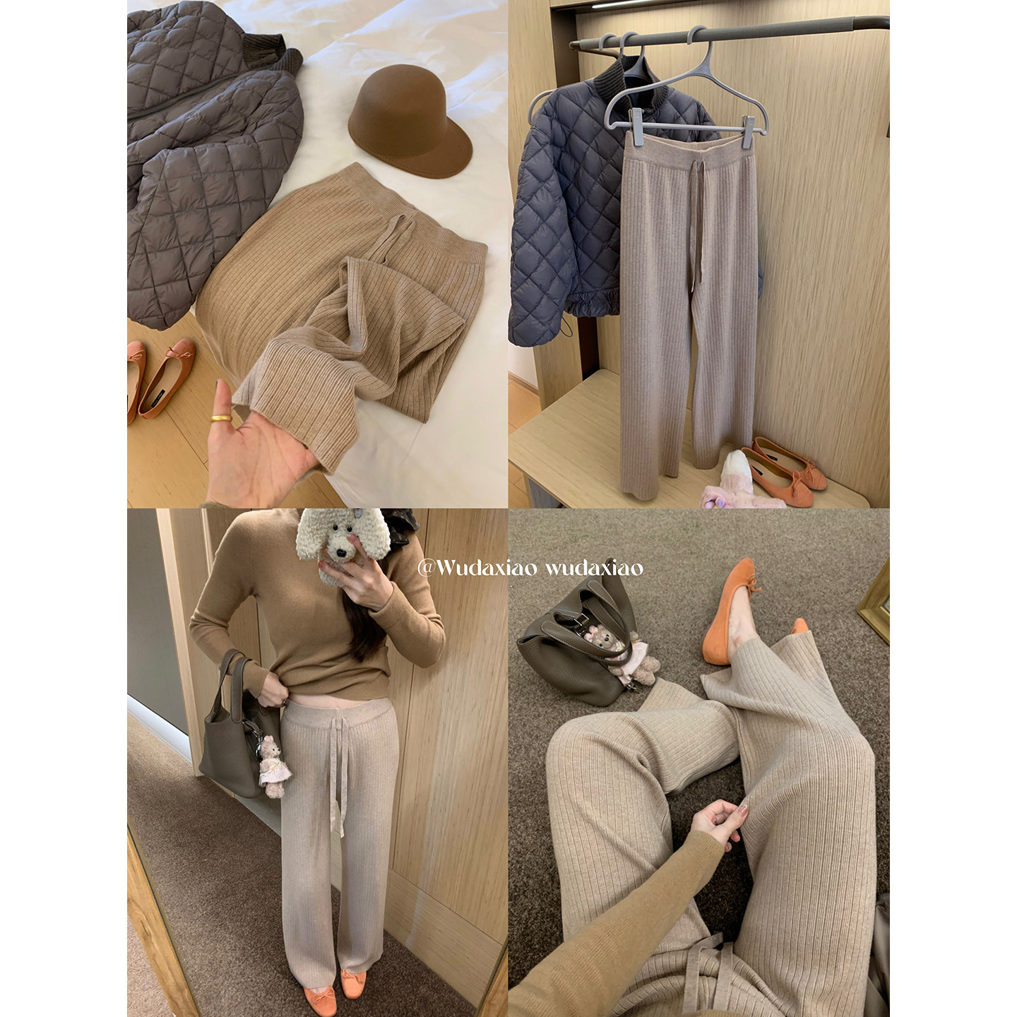 静谧花园~温柔百搭糯叽叽高腰显瘦坑条洋气抽绳针织裤 吴大笑