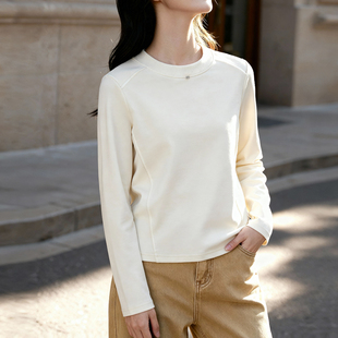 House 鱼骨线抓绒打底衫 百家好套头圆领长袖 修身 T恤女冬季 Basic