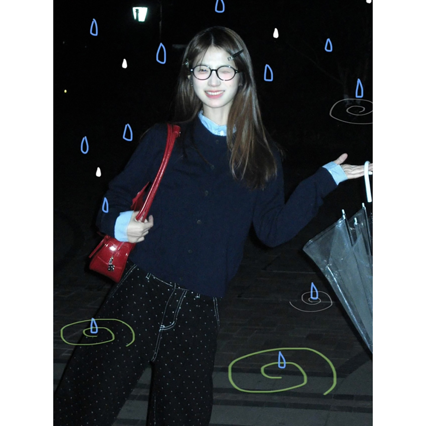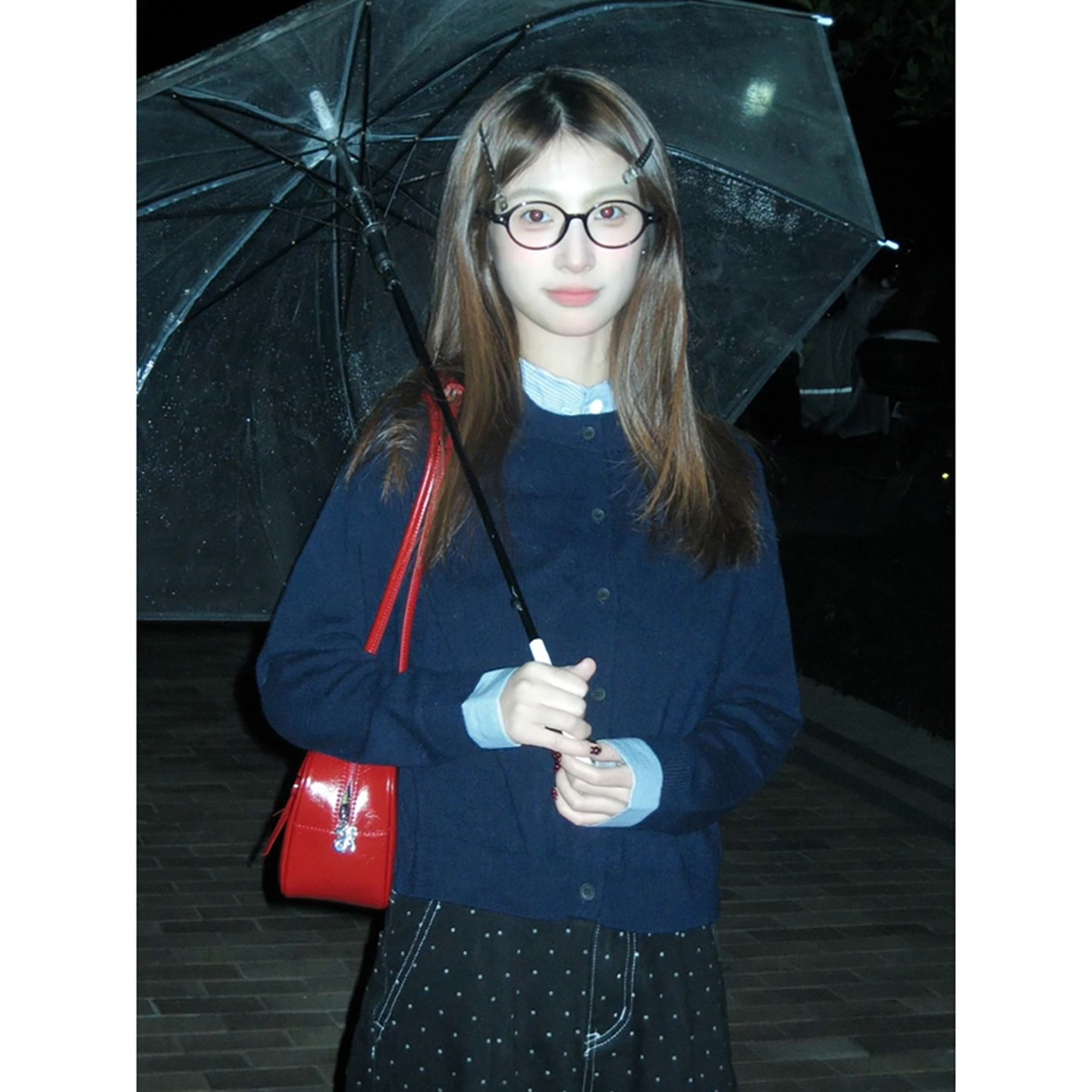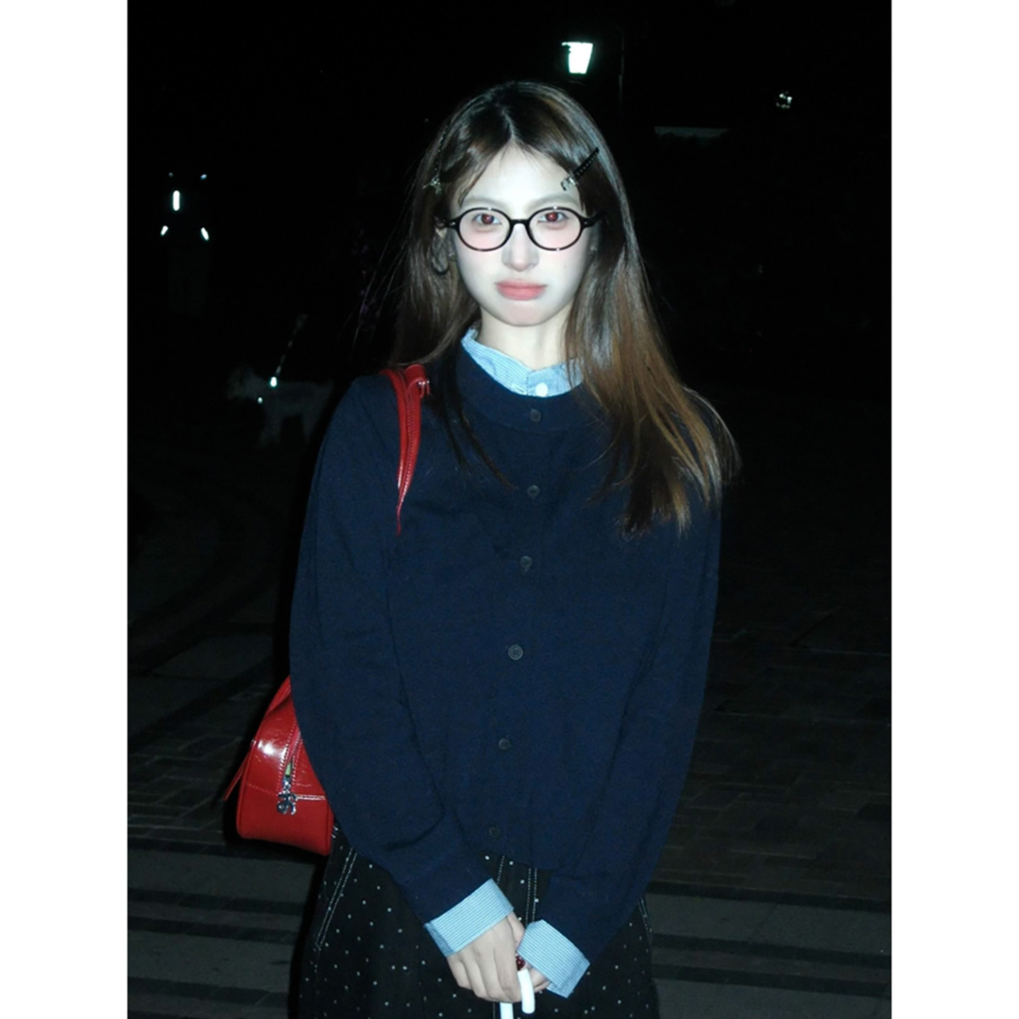 日系复古学院风假两件毛衣外套女秋冬氛围感韩系独特漂亮针织开衫