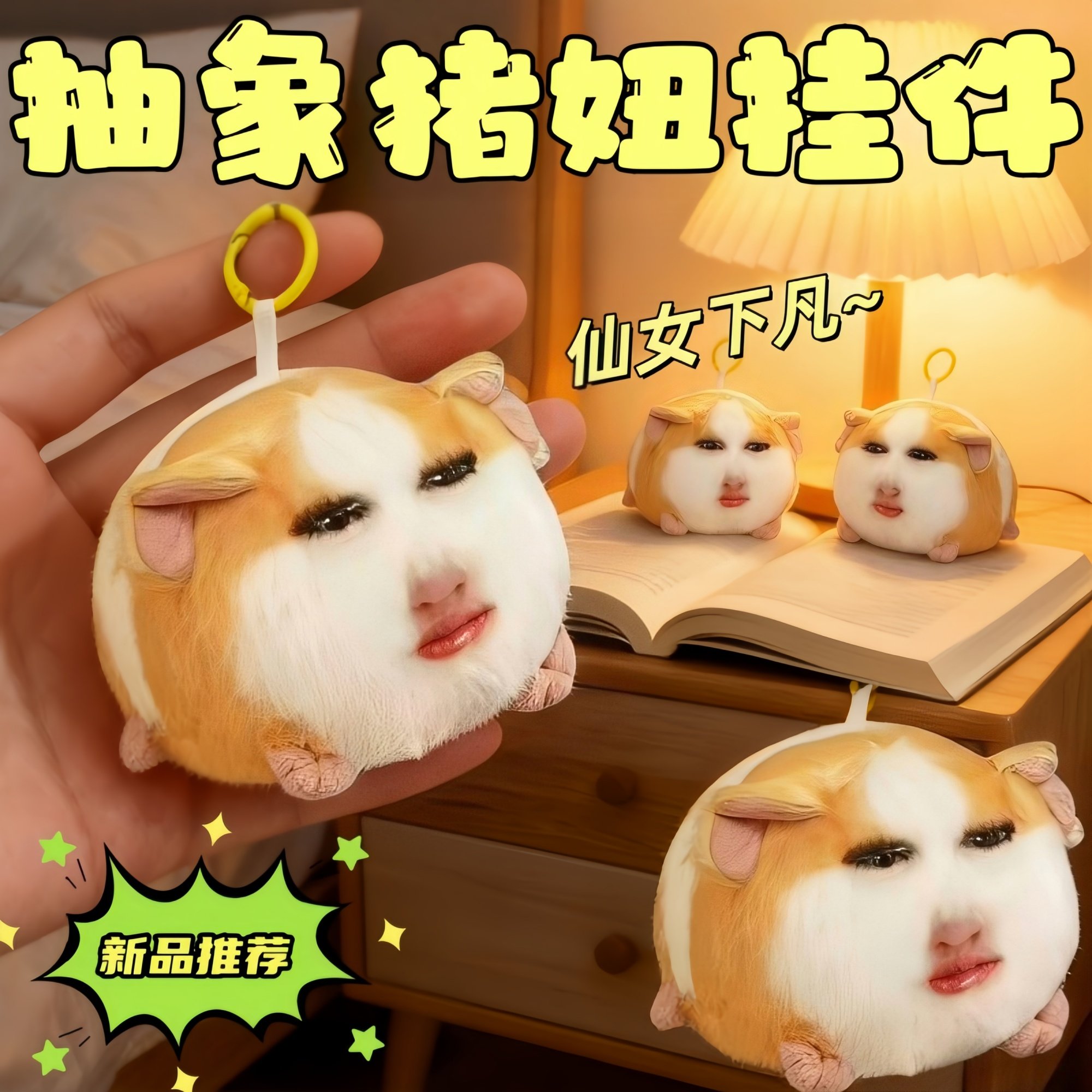猪妞挂件搞笑抽象仙女下凡毛绒玩具荷兰猪玩偶可录音表情包钥匙扣
