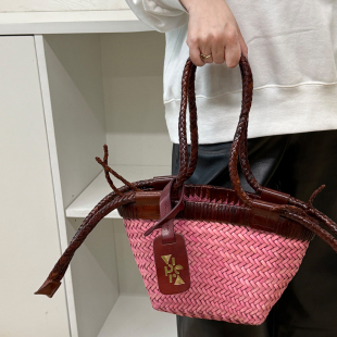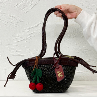 正品 现货VIPERA意大利小众牛皮手工编织单肩包手提包菜篮子女包
