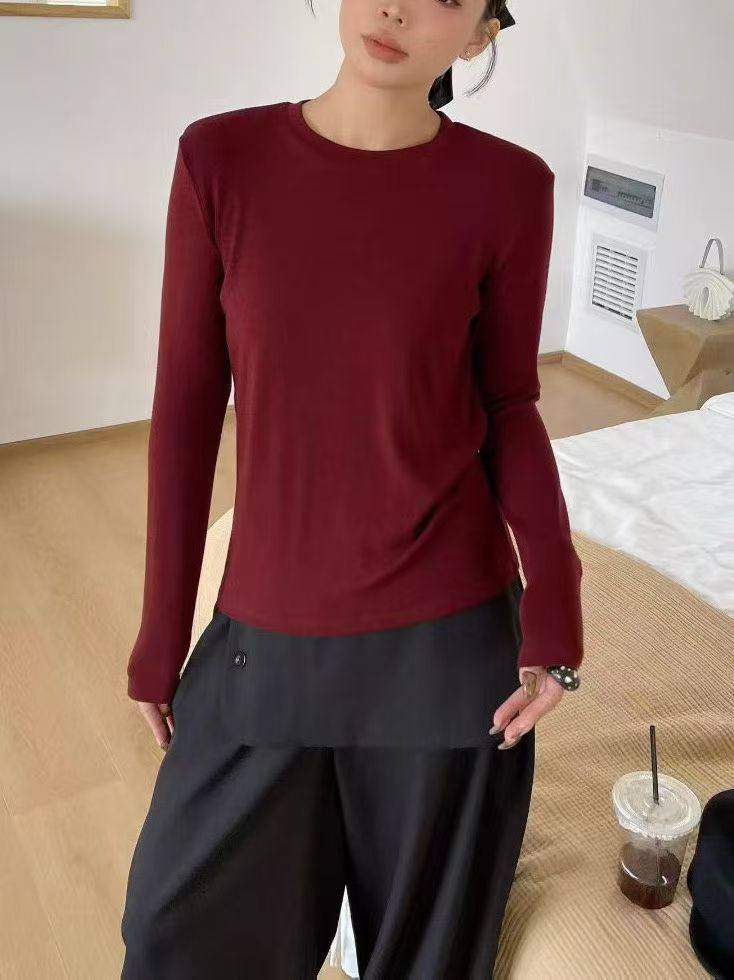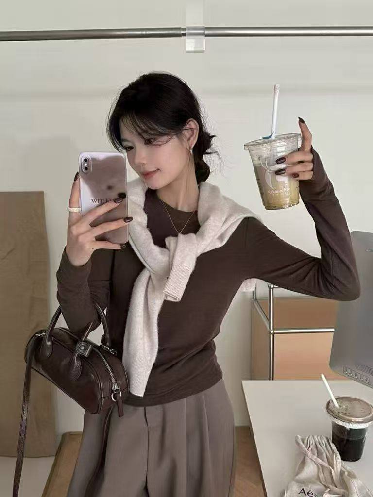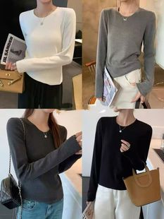 打底衫 E念8003冬季 加绒羊绒棉纯色韩版 圆领长袖 t恤女2025 新款