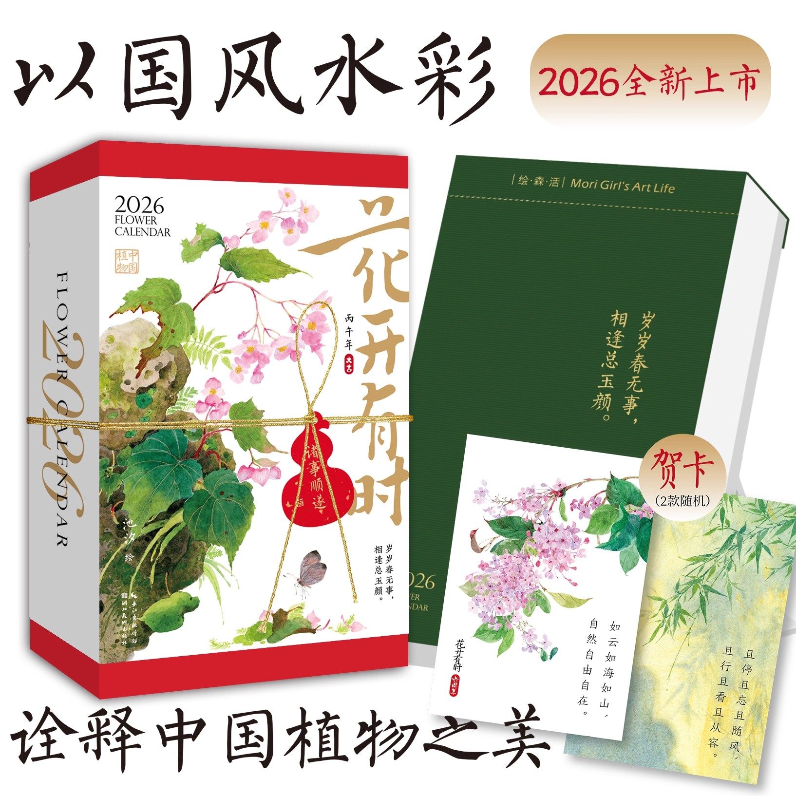 桌面摆件实用文艺礼物 2026年新款 原创设计ins风台历 马年创意可撕 水彩花卉插画集手账二十四节一日一诗词附赠贺卡 花开有时日历