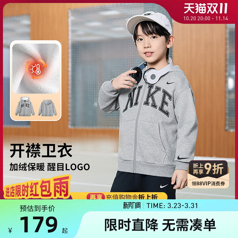 童装 男童加绒上衣2025冬季 运动女童外套 3brand儿童卫衣开衫 Nike