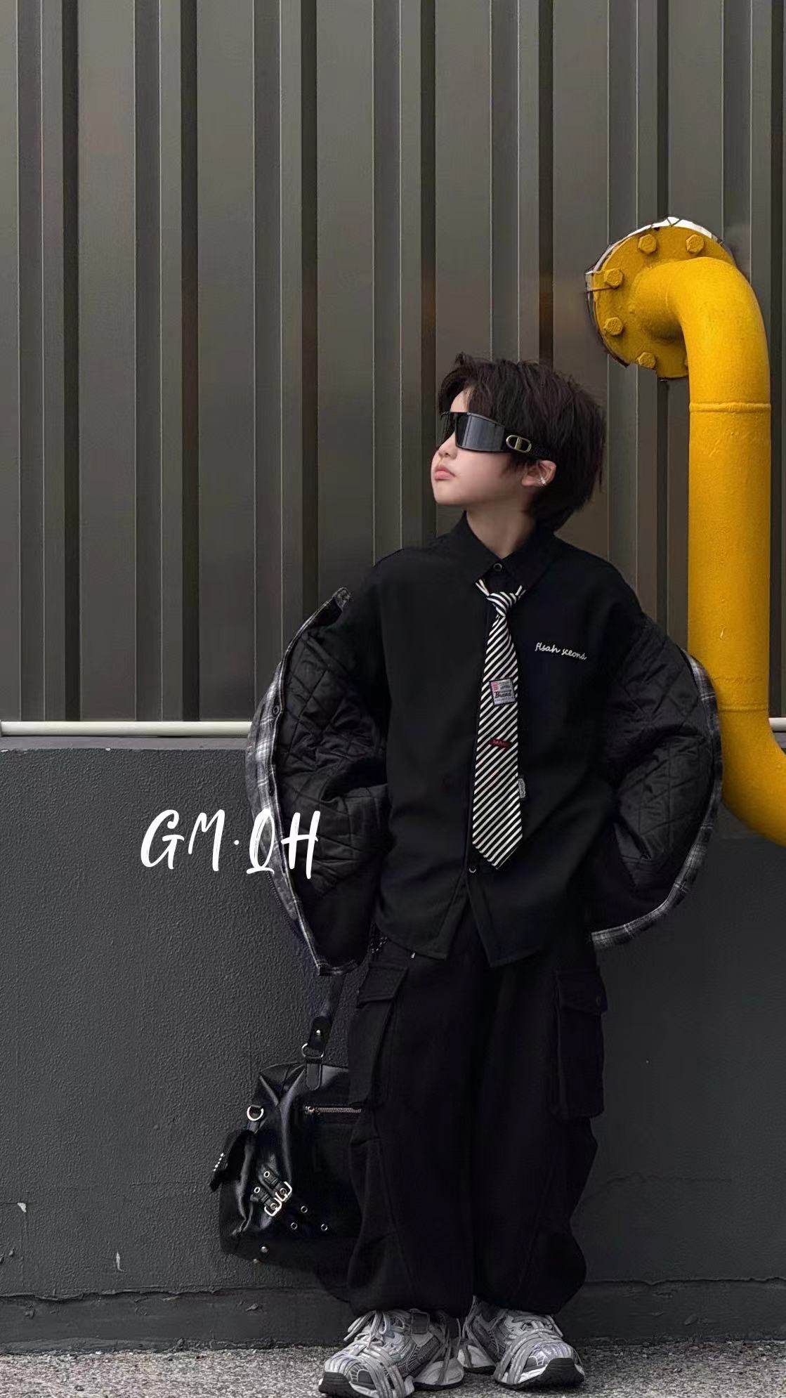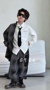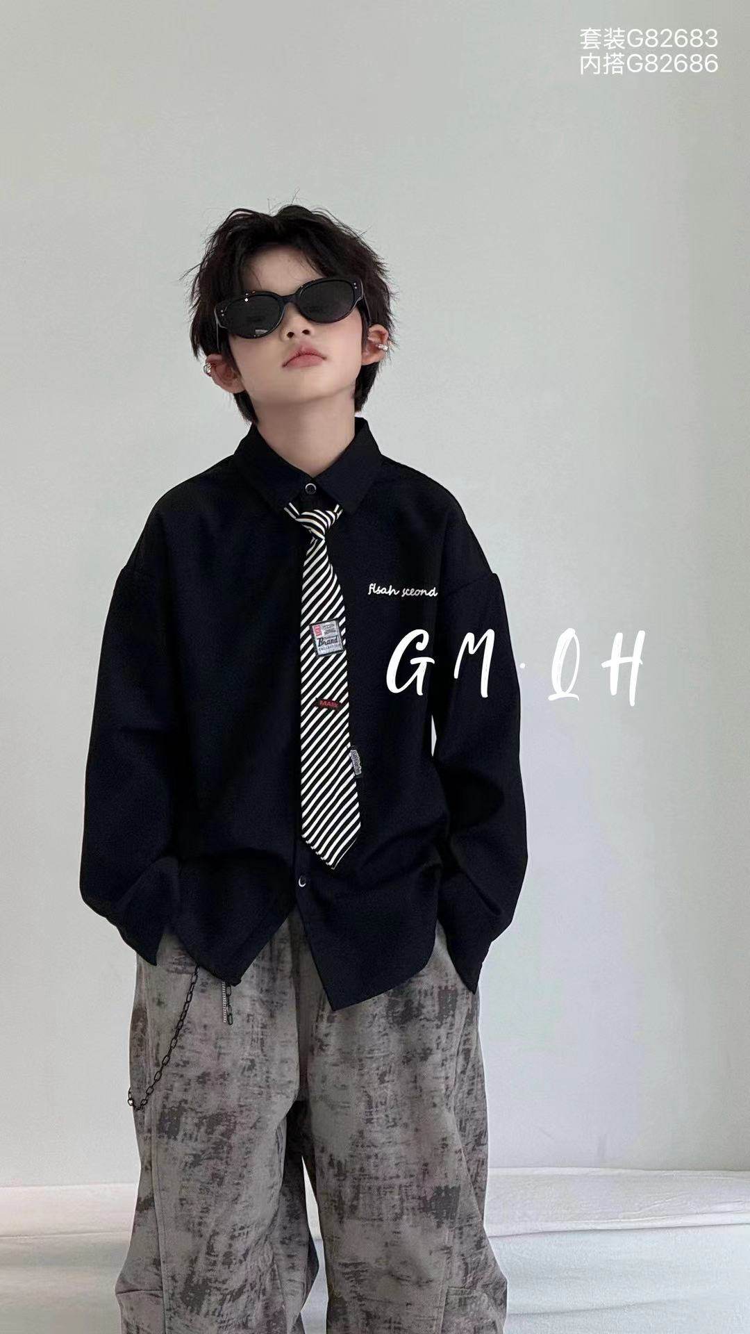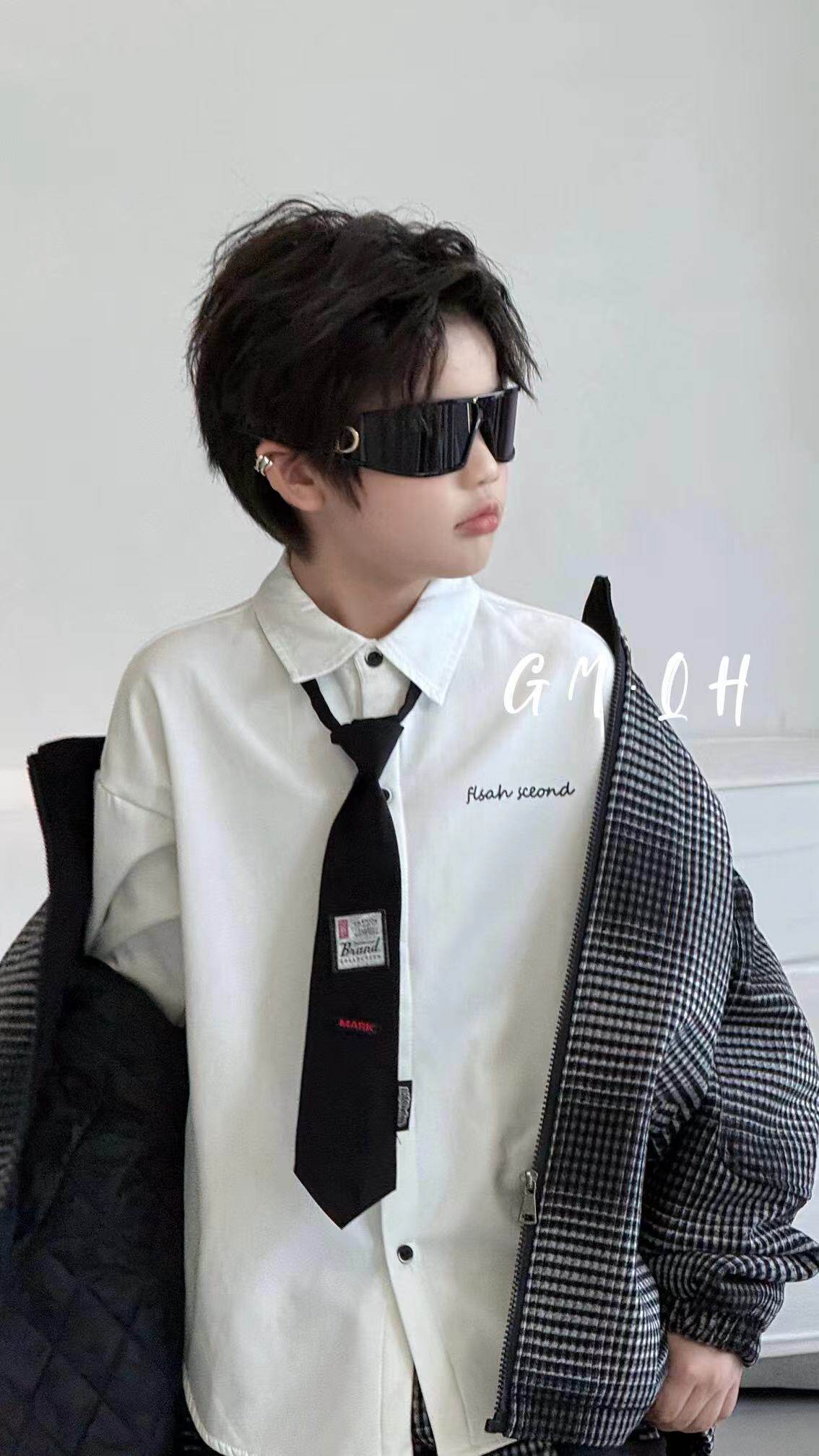 上衣带领带男童白色加绒衬衫 中大童衬衣秋冬学院风长袖 童装 GM韩版