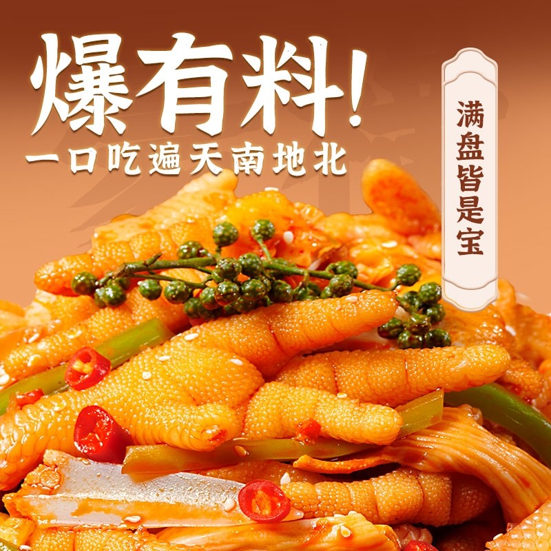 岁粤无骨鸡爪椒麻大杂烩肉制品休闲小吃麻辣脆卤贡菜鸡脚筋速食菜